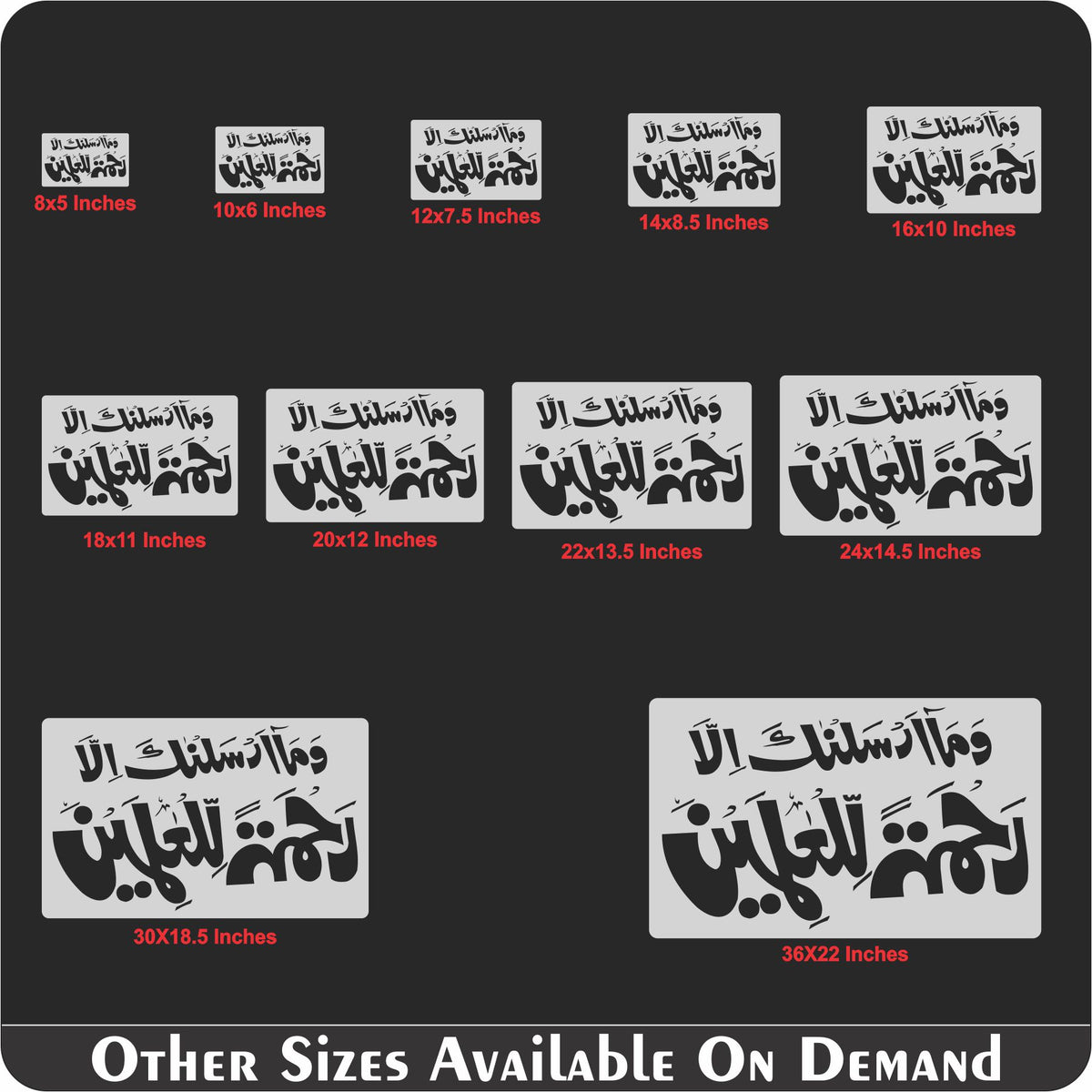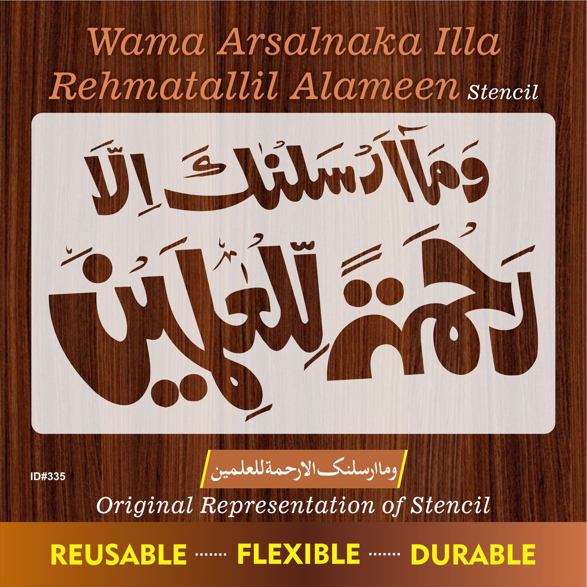 Islamic Calligraphy Stencil of Wama Arsalnaka Illa Rahmatal'lil Aalmeen Calligraphy Islamic For wall decoration, used for Canvas and scrapbooking, Our wall stencils are unbreakable and reusable, which can be used with different kinds of paints and techniques, find more calligraphy stencils, floral stencils, Mandela stencils, in our store.