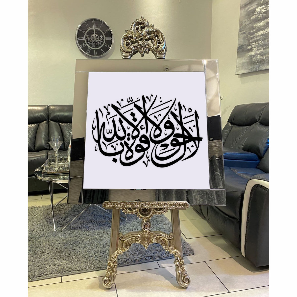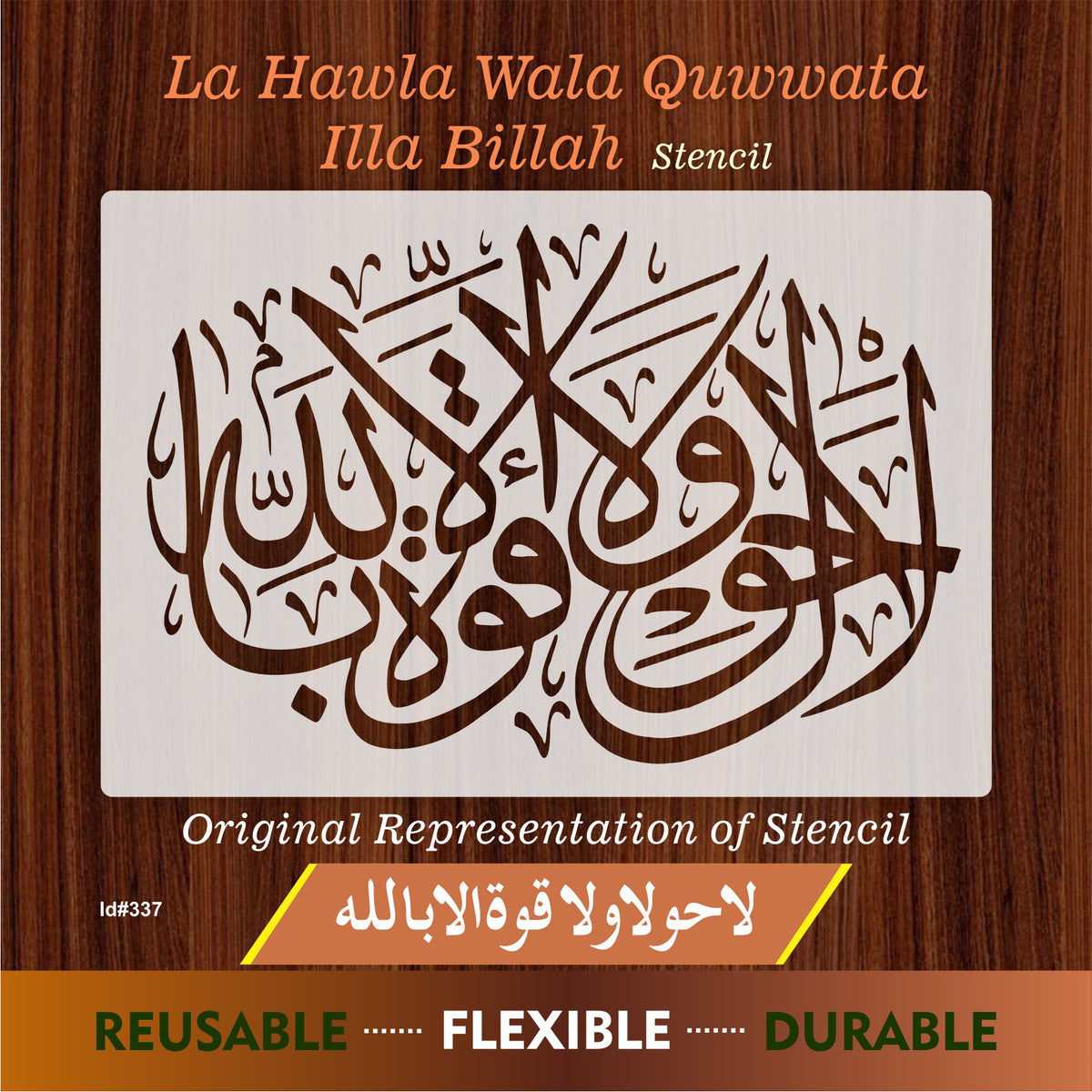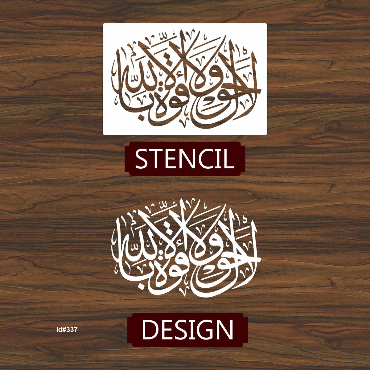 Islamic Calligraphy Stencil of La Hawla Wala Quwata Illa Billa Hi Aly'il Azeem Calligraphy Islamic For wall decoration, used for Canvas and scrapbooking, Our wall stencils are unbreakable and reusable, which can be used with different kinds of paints and techniques, find more calligraphy stencils, floral stencils, Mandela stencils, in our store.