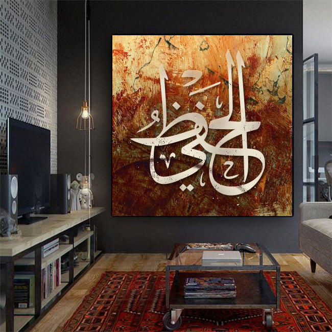 ALLAH NAME AL HAFEEZO Calligraphy Islamic Reusable Stencil for Canvas and wall painting.ID#4051