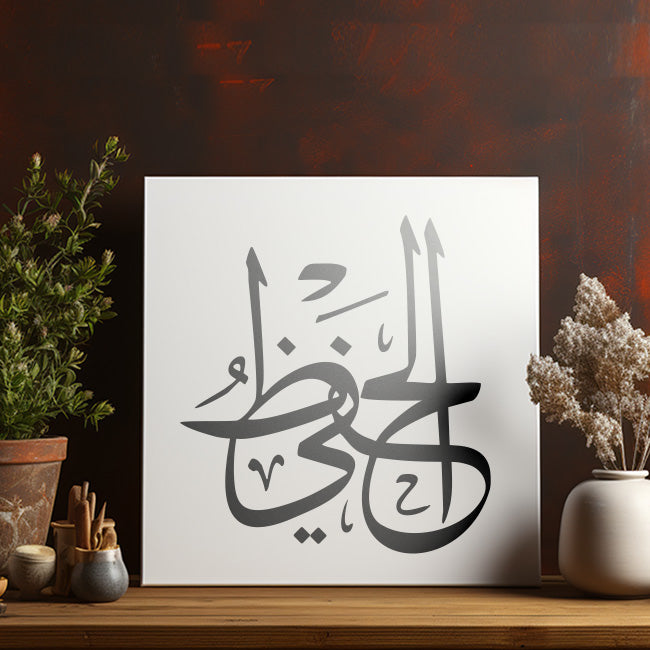 Islamic Calligraphy Stencil ALLAH NAME AL HAFEEZO For wall decoration, used for Canvas and scrapbooking, Our wall stencils are unbreakable and reusable, which can be used with different kinds of paints and techniques, find more calligraphy stencils, floral stencils, Mandela stencils, in our store.