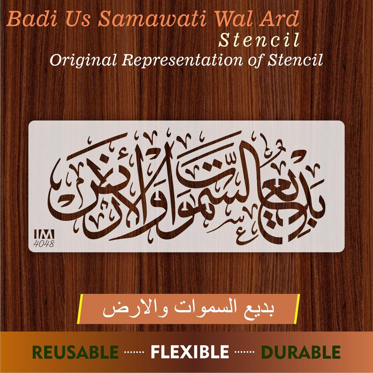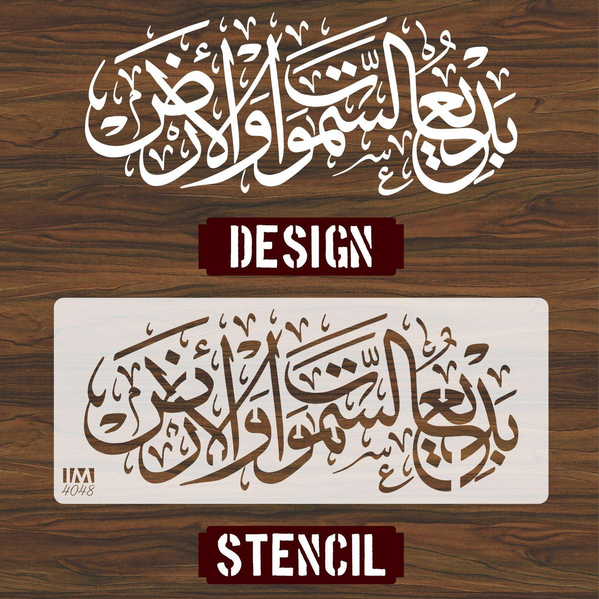 Islamic Calligraphy Stencil badi us samawati wal ard For wall decoration, used for Canvas and scrapbooking, Our wall stencils are unbreakable and reusable, which can be used with different kinds of paints and techniques, find more calligraphy stencils, floral stencils, Mandela stencils, in our store.