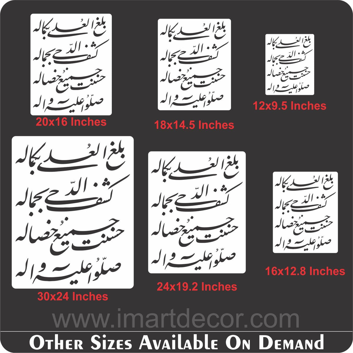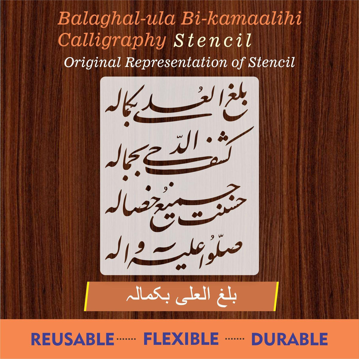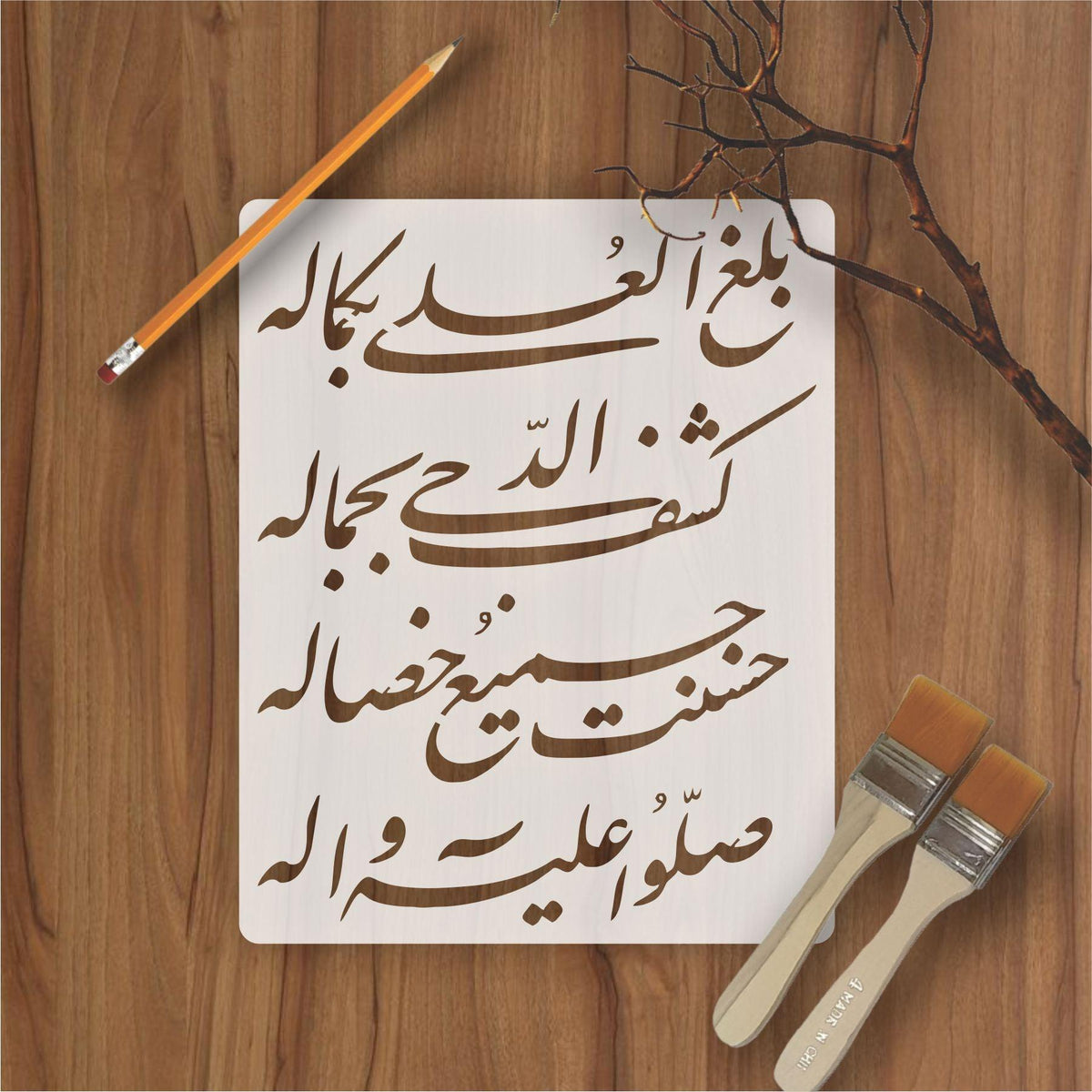 Islamic Calligraphy Stencil balaghal ula be kamalehi  for wall decoration, used for Canvas and scrapbooking, Our wall stencils are unbreakable and reusable, which can be used with different kinds of paints and techniques, find more calligraphy stencils, floral stencils, Mandela stencils, in our store.