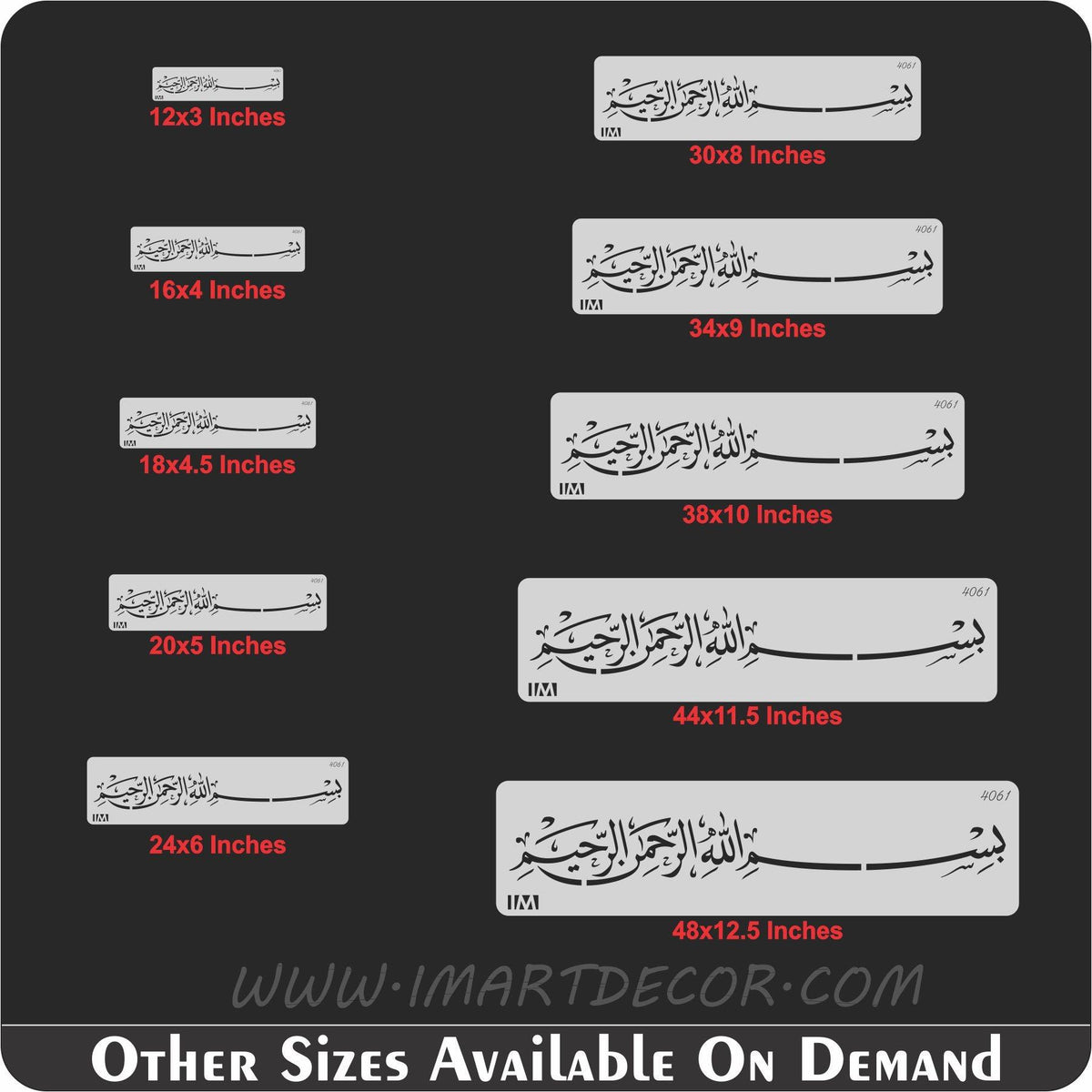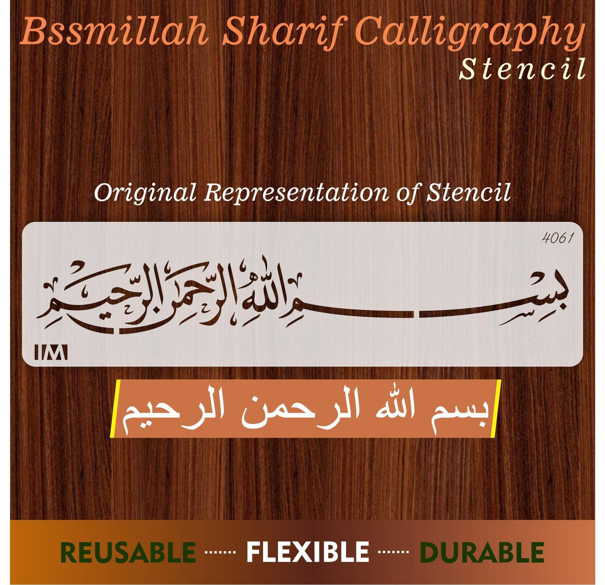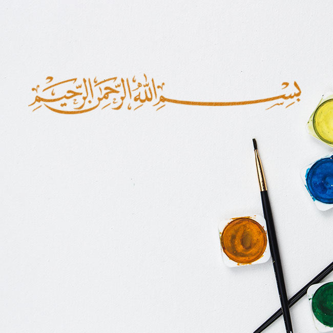Islamic Calligraphy Stencil BISMILLAH IR RAHMAN IR RAHIM For wall decoration, used for Canvas and scrapbooking, Our wall stencils are unbreakable and reusable, which can be used with different kinds of paints and techniques, find more calligraphy stencils, floral stencils, Mandela stencils, in our store.
