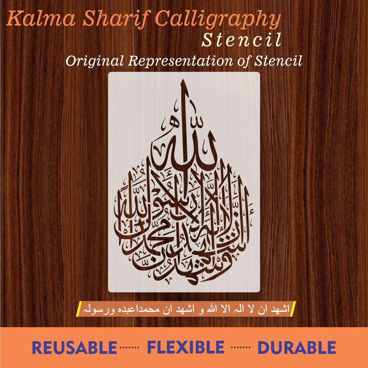 Islamic Calligraphy Stencil Kalma E Shadat for wall decoration, used for Canvas and scrapbooking, Our wall stencils are unbreakable and reusable, which can be used with different kinds of paints and techniques, find more calligraphy stencils, floral stencils, Mandela stencils, in our store.