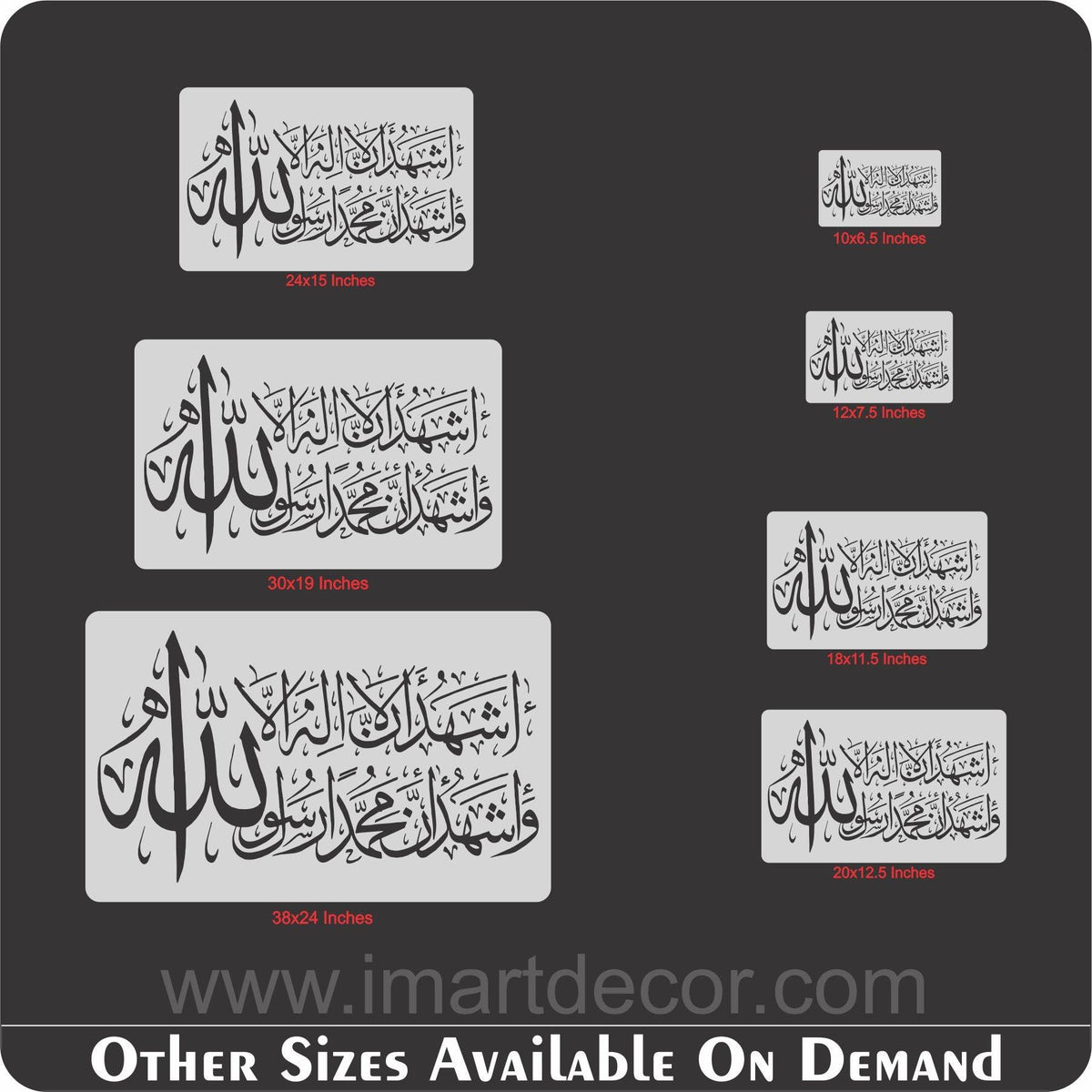 Islamic Calligraphy Stencil kalma e Shahadat for wall decoration, used for Canvas and scrapbooking, Our wall stencils are unbreakable and reusable, which can be used with different kinds of paints and techniques, find more calligraphy stencils, floral stencils, Mandela stencils, in our store.