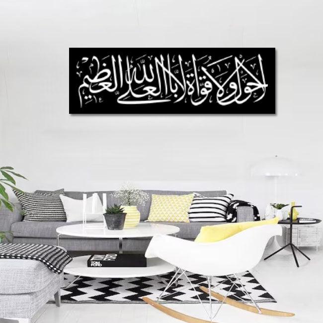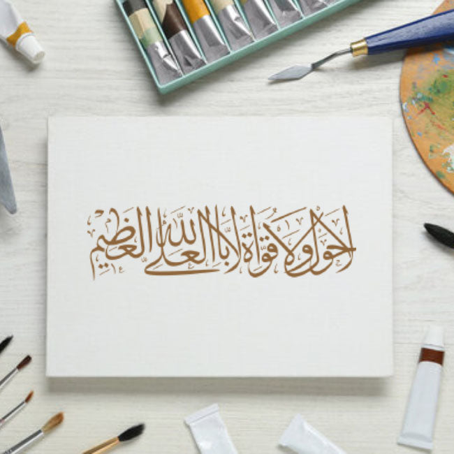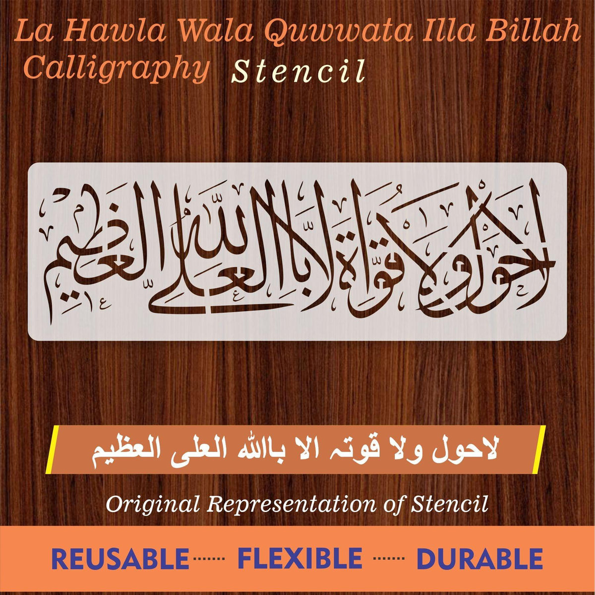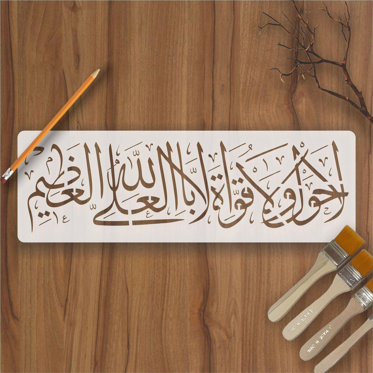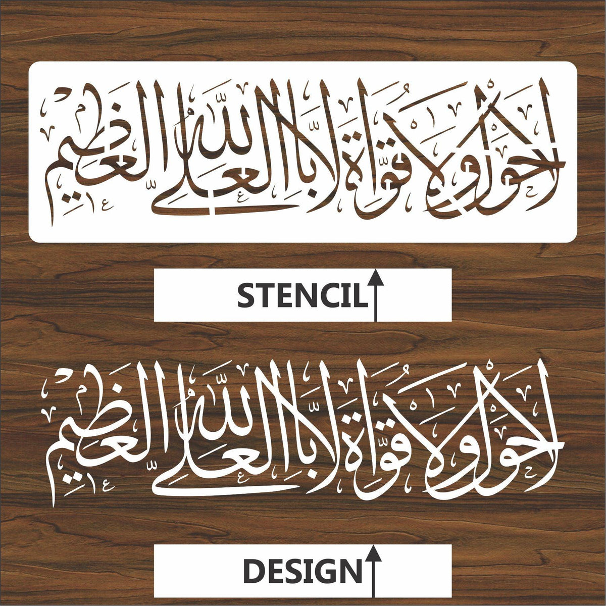 Islamic Calligraphy Stencil la hawla wala quwwata illa billahil aliyyil azim for wall decoration, used for Canvas and scrapbooking, Our wall stencils are unbreakable and reusable, which can be used with different kinds of paints and techniques, find more calligraphy stencils, floral stencils, Mandela stencils, in our store.