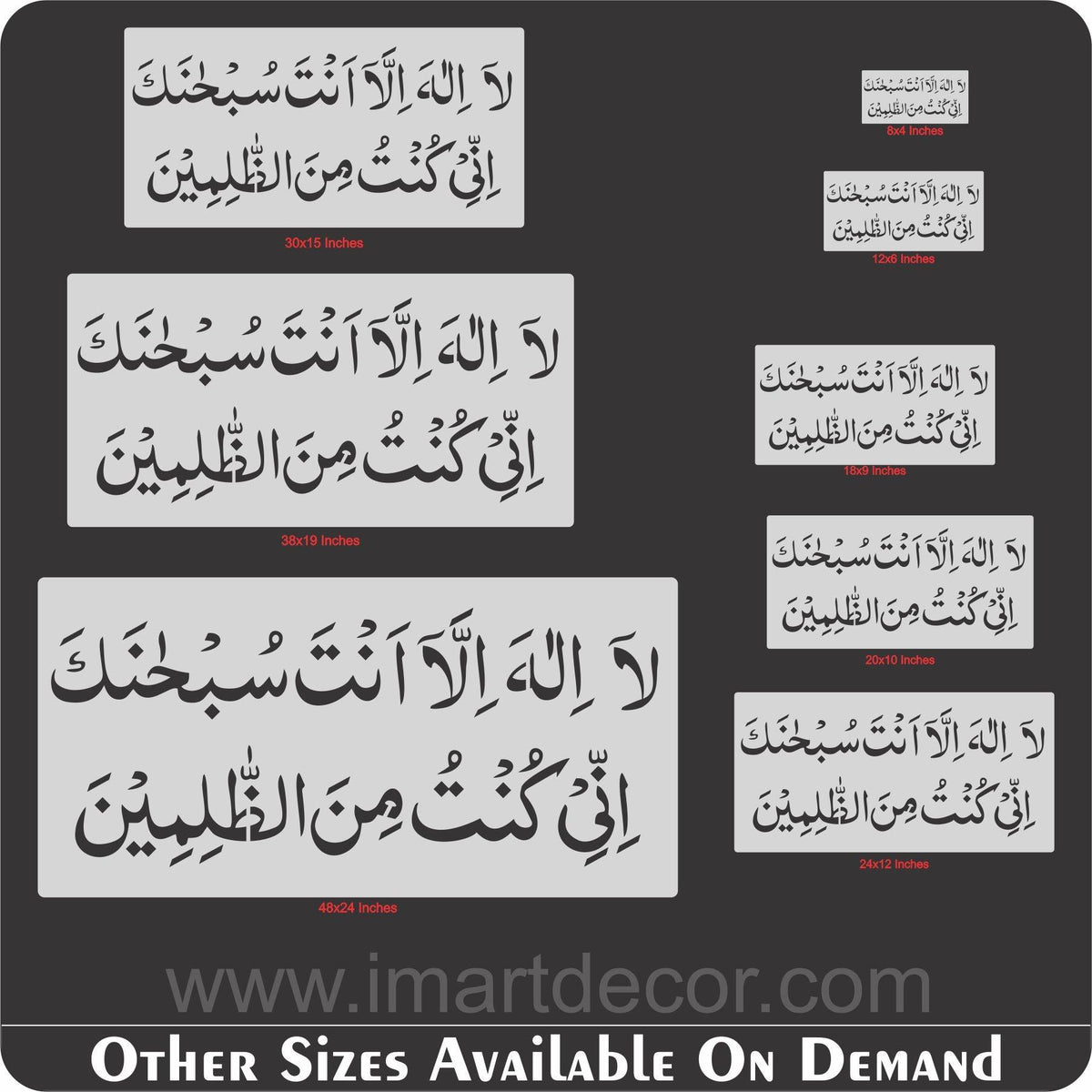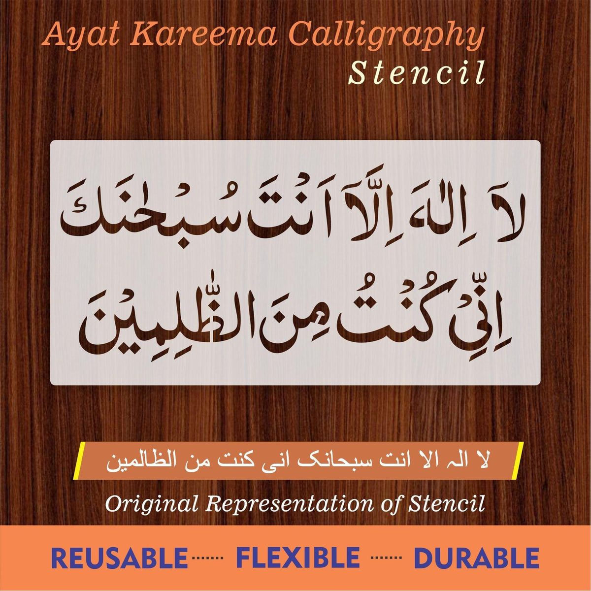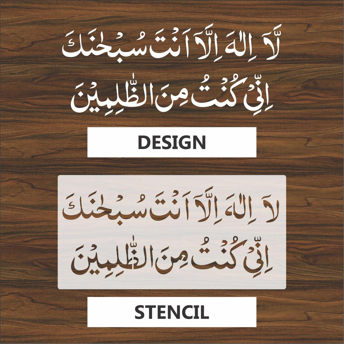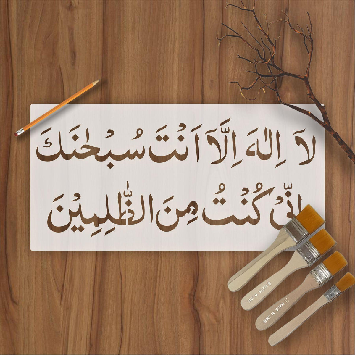 Islamic Calligraphy Stencil la ilaha illa anta subhanaka inni kuntu minaz zalimin for wall decoration, used for Canvas and scrapbooking, Our wall stencils are unbreakable and reusable, which can be used with different kinds of paints and techniques, find more calligraphy stencils, floral stencils, Mandela stencils, in our store.