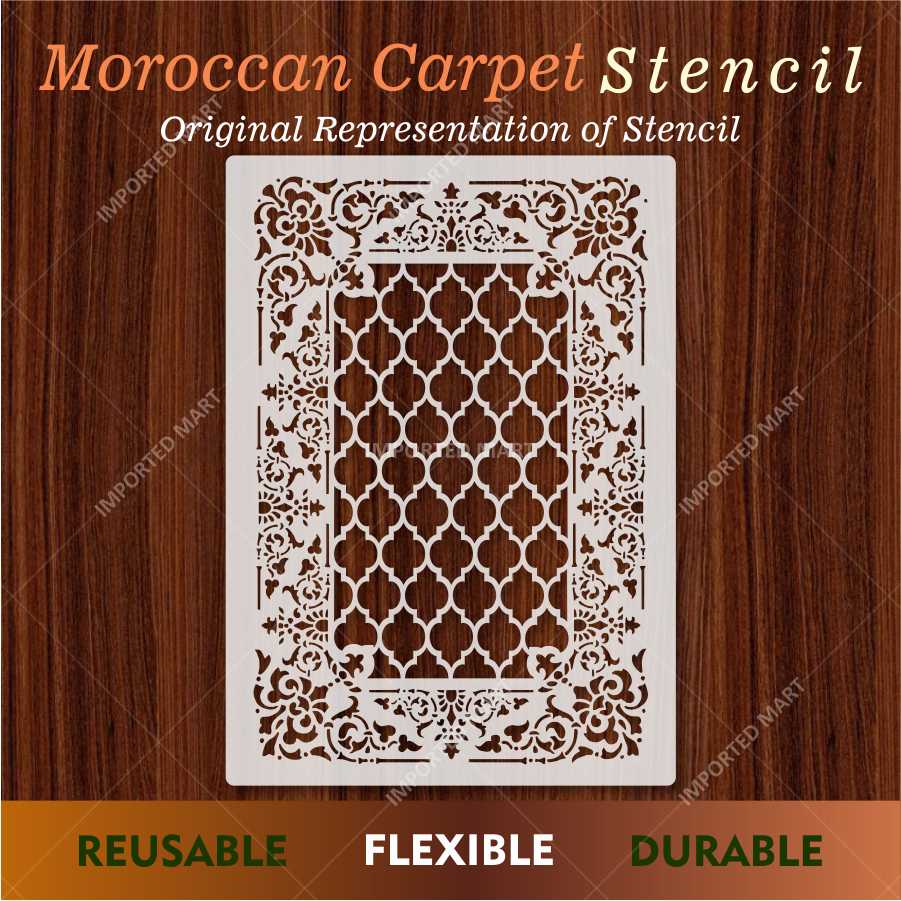 Add rich Moroccan elegance to your décor with this reusable Moroccan carpet stencil featuring a classic geometric rug pattern.