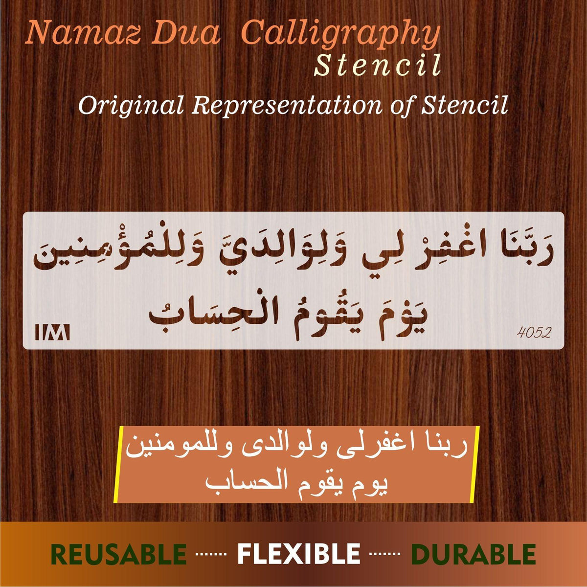 Islamic Calligraphy Stencil RABBIGHFIRLI WALIWALIDAYYA WALIL MUMINEENA YAUMA YA QMUL HISAB For wall decoration, used for Canvas and scrapbooking, Our wall stencils are unbreakable and reusable, which can be used with different kinds of paints and techniques, find more calligraphy stencils, floral stencils, Mandela stencils, in our store.