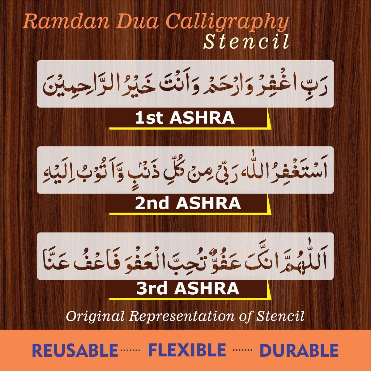 Islamic Calligraphy Stencil the three duas of Ramadan for wall decoration, used for Canvas and scrapbooking, Our wall stencils are unbreakable and reusable, which can be used with different kinds of paints and techniques, find more calligraphy stencils, floral stencils, Mandela stencils, in our store.