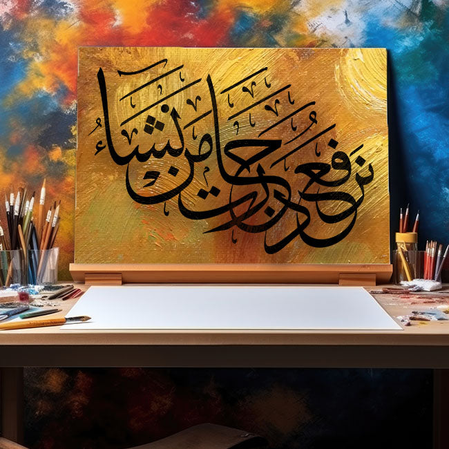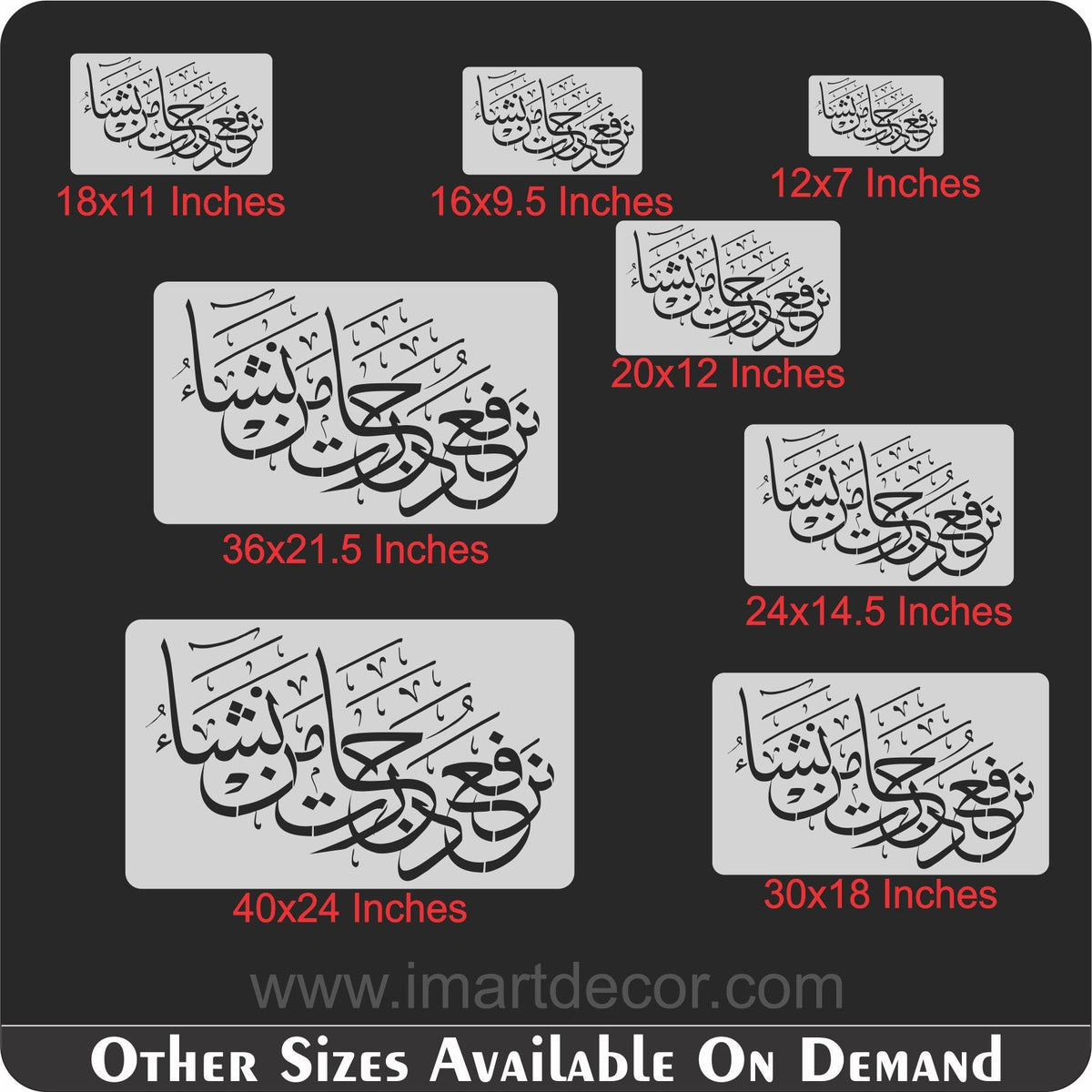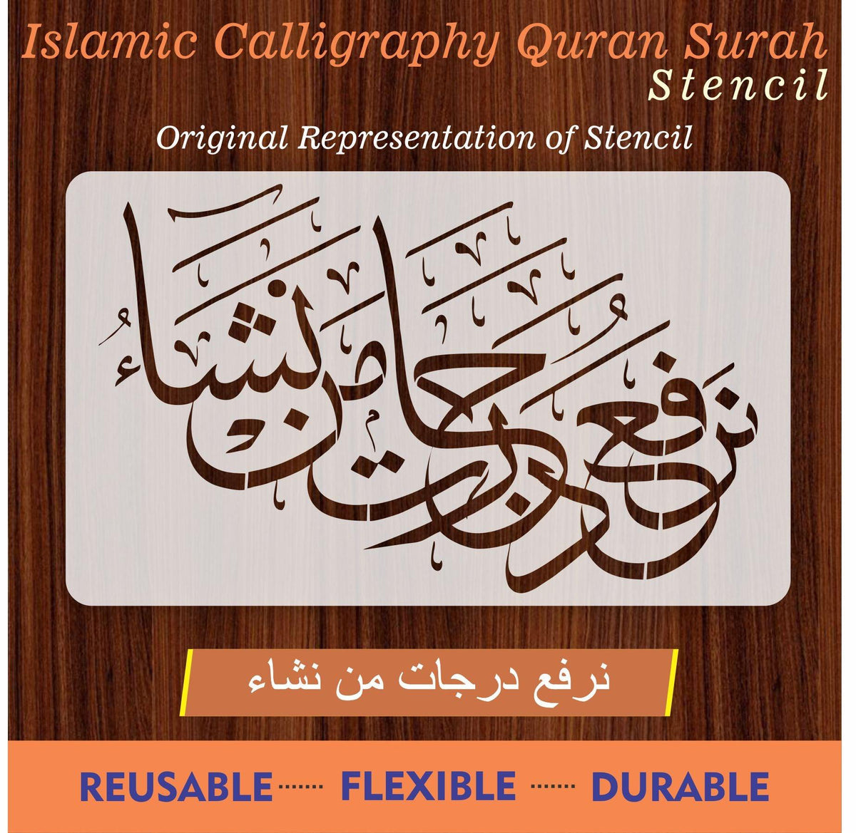 Islamic Calligraphy Stencil Quran verse Ner Fauo Drajat Man Nasha for wall decoration, used for Canvas and scrapbooking, Our wall stencils are unbreakable and reusable, which can be used with different kinds of paints and techniques, find more calligraphy stencils, floral stencils, Mandela stencils, in our store.