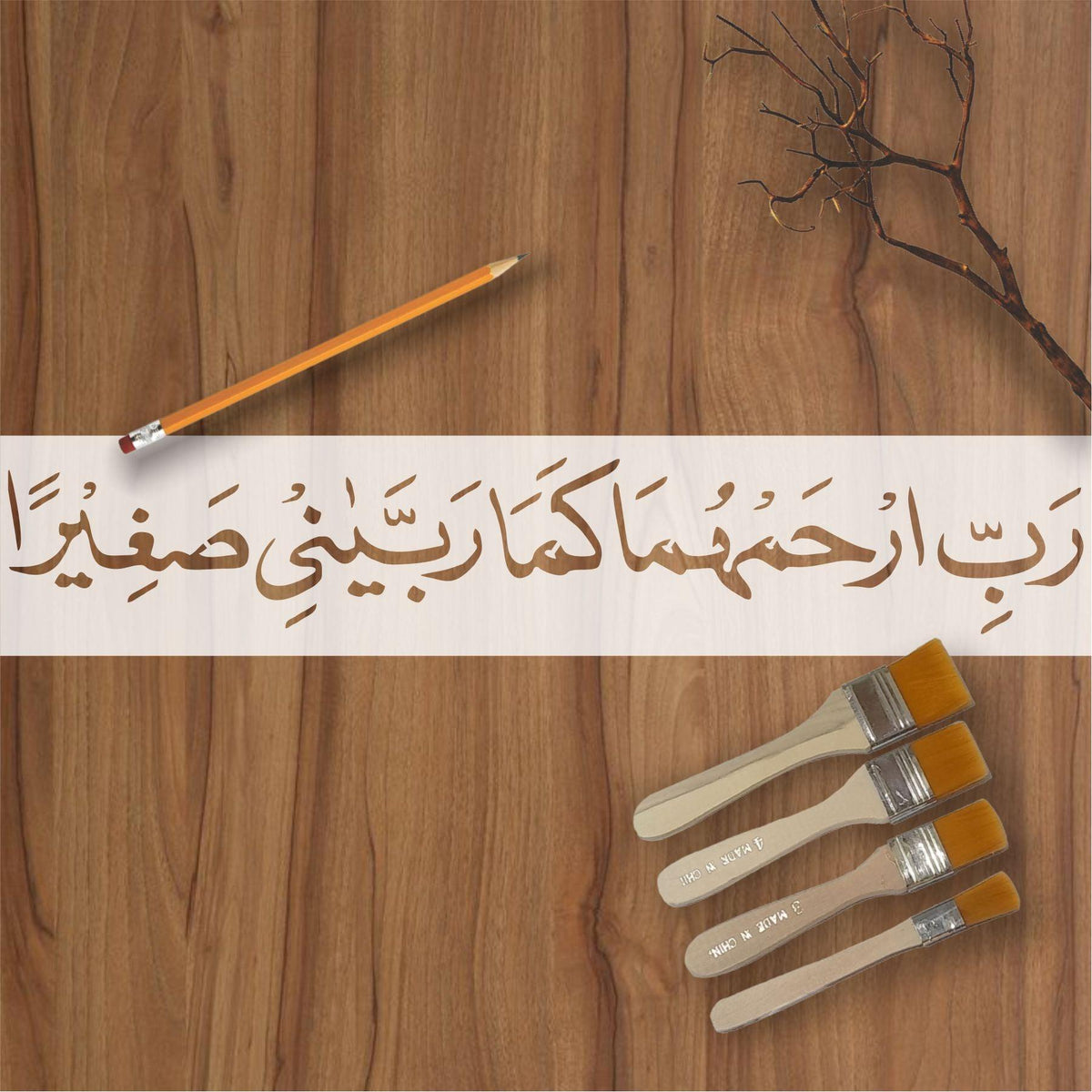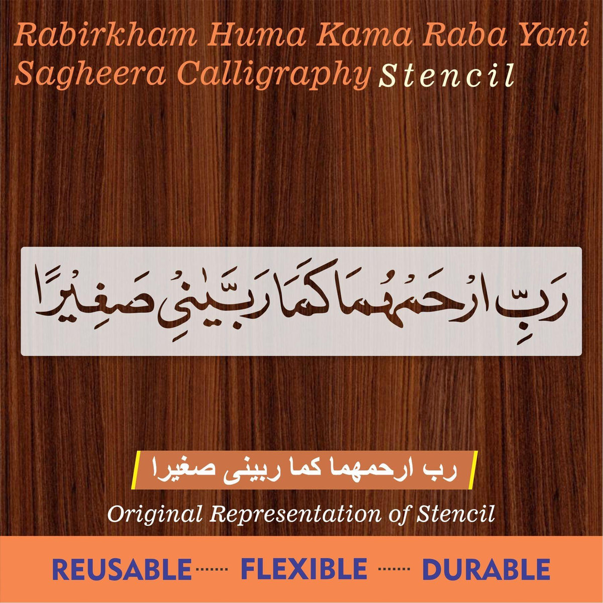 Islamic Calligraphy Stencil rabir kham huma kama rabbayani sagheera for wall decoration, used for Canvas and scrapbooking, Our wall stencils are unbreakable and reusable, which can be used with different kinds of paints and techniques, find more calligraphy stencils, floral stencils, Mandela stencils, in our store.