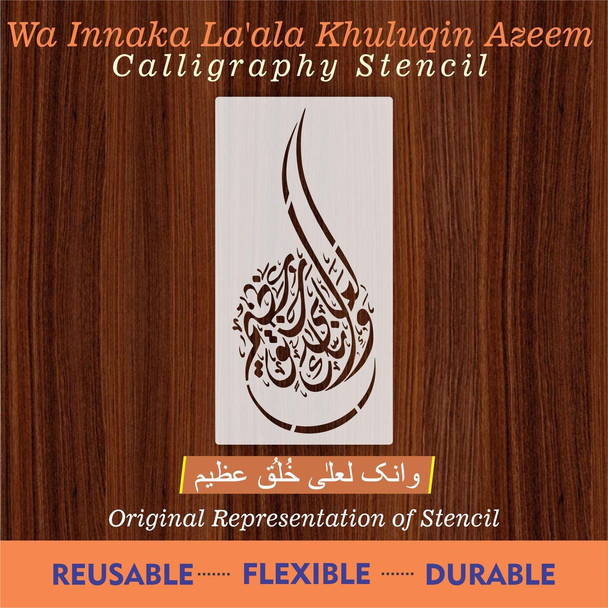 Islamic Calligraphy Stencil wa innaka la'ala khuluqin azeem for wall decoration, used for Canvas and scrapbooking, Our wall stencils are unbreakable and reusable, which can be used with different kinds of paints and techniques, find more calligraphy stencils, floral stencils, Mandela stencils, in our store.
