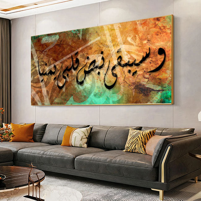 Wa SeeQi Na BaZa Qalbi Yamina calligraphy Islamic Reusable Stencil for Canvas and wall painting.ID#4007