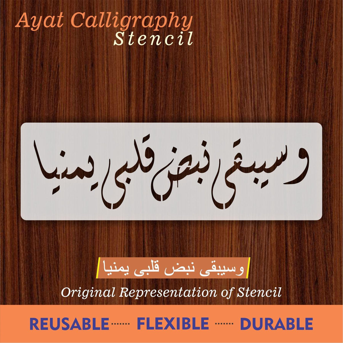 • Wa SeeQi Na BaZa Qalbi Yamina verse Islamic calligraphy stencils.