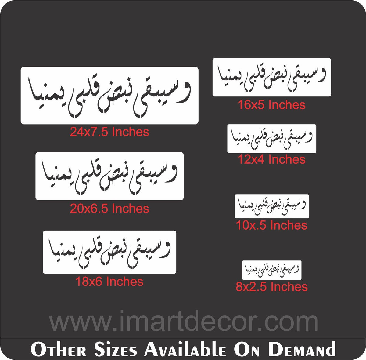 Islamic Calligraphy Stencil Wa SeeQi Na BaZa Qalbi Yamina  for wall decoration, used for Canvas and scrapbooking, Our wall stencils are unbreakable and reusable, which can be used with different kinds of paints and techniques, find more calligraphy stencils, floral stencils, Mandela stencils, in our store.