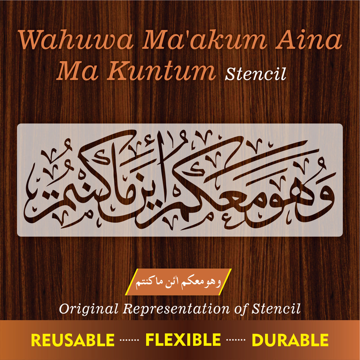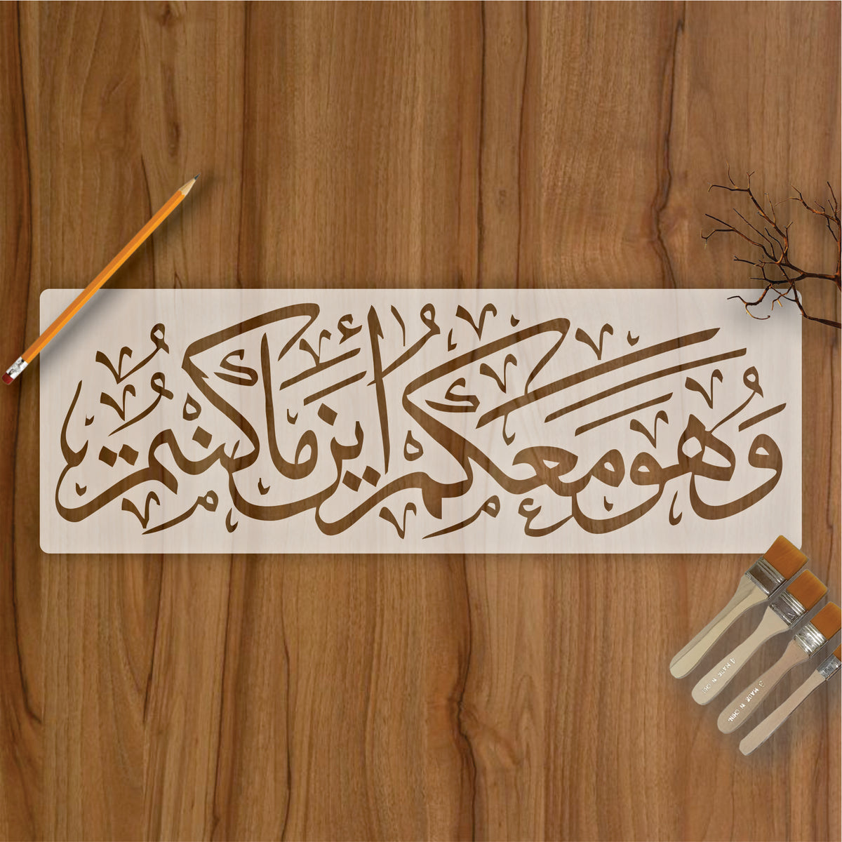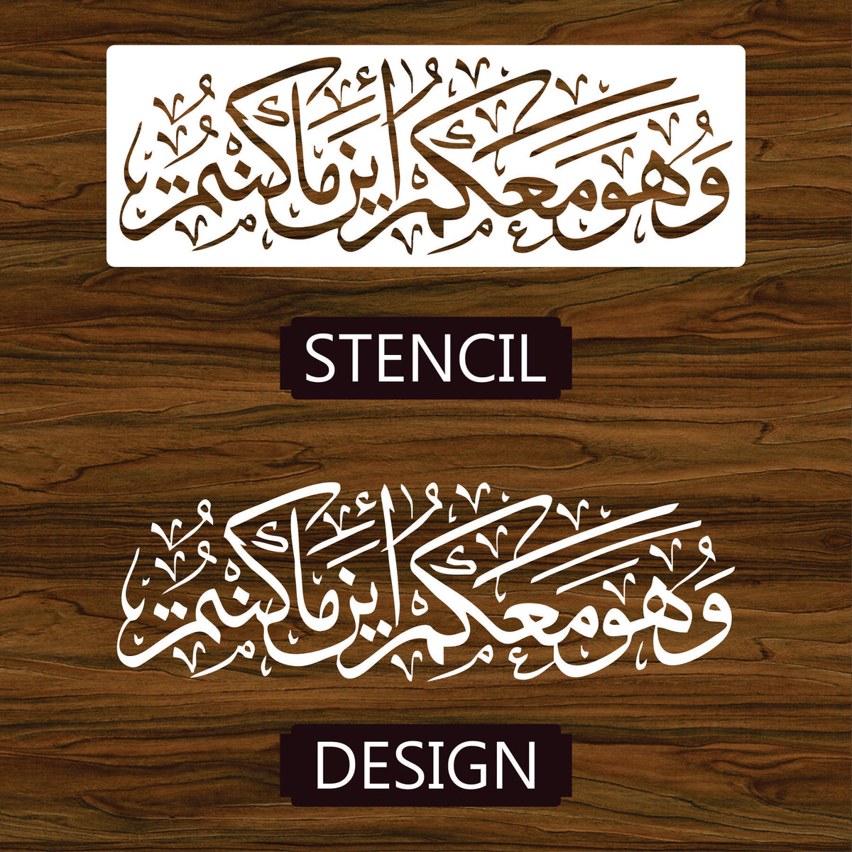 Islamic Calligraphy Stencil of WAHOWA MA AKUM Calligraphy Islamic For wall decoration, used for Canvas and scrapbooking, Our wall stencils are unbreakable and reusable, which can be used with different kinds of paints and techniques, find more calligraphy stencils, floral stencils, Mandela stencils, in our store.
