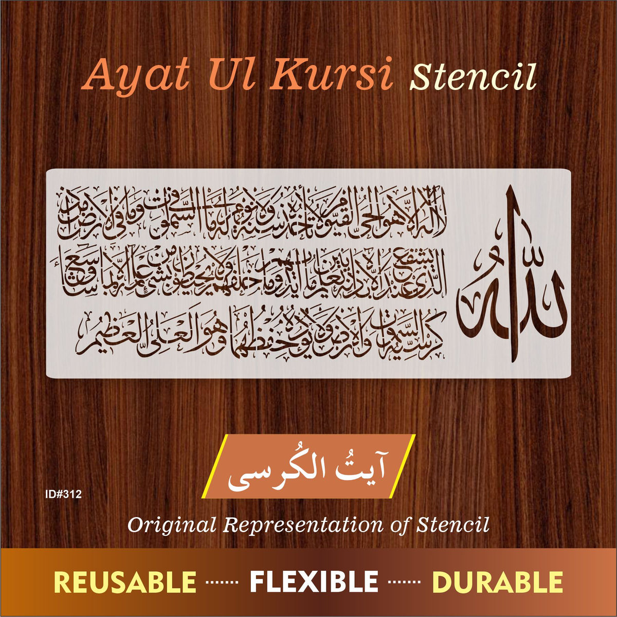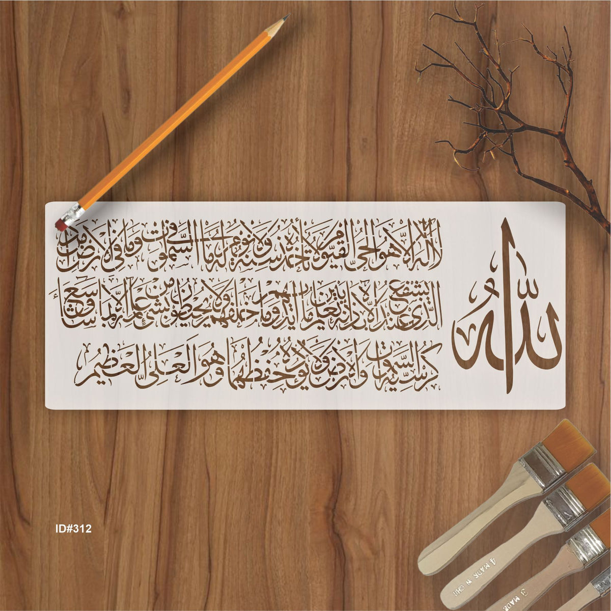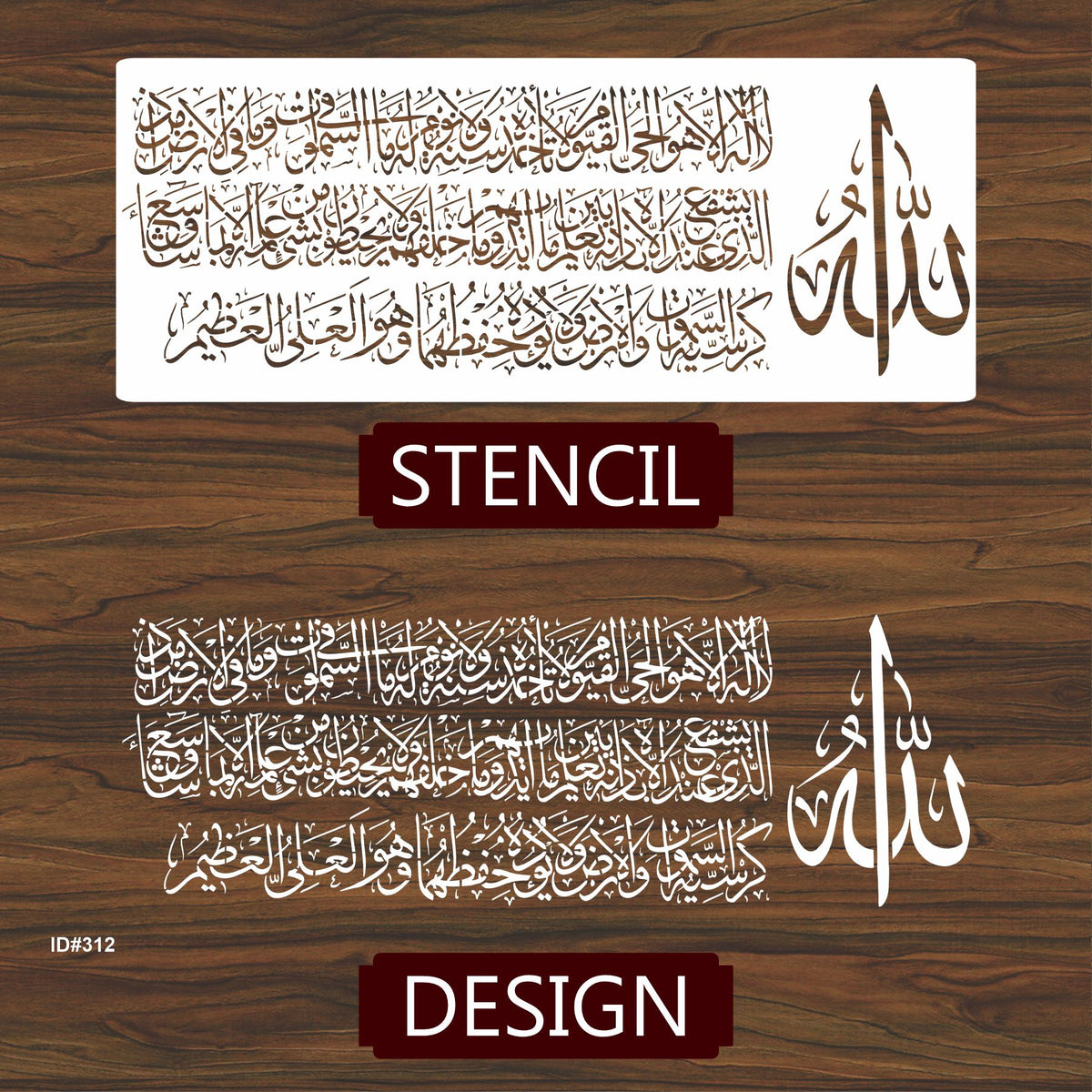 Islamic Calligraphy Stencil of Ayat Ul Kurse Calligraphy Islamic For wall decoration, used for Canvas and scrapbooking, Our wall stencils are unbreakable and reusable, which can be used with different kinds of paints and techniques, find more calligraphy stencils, floral stencils, Mandela stencils, in our store.