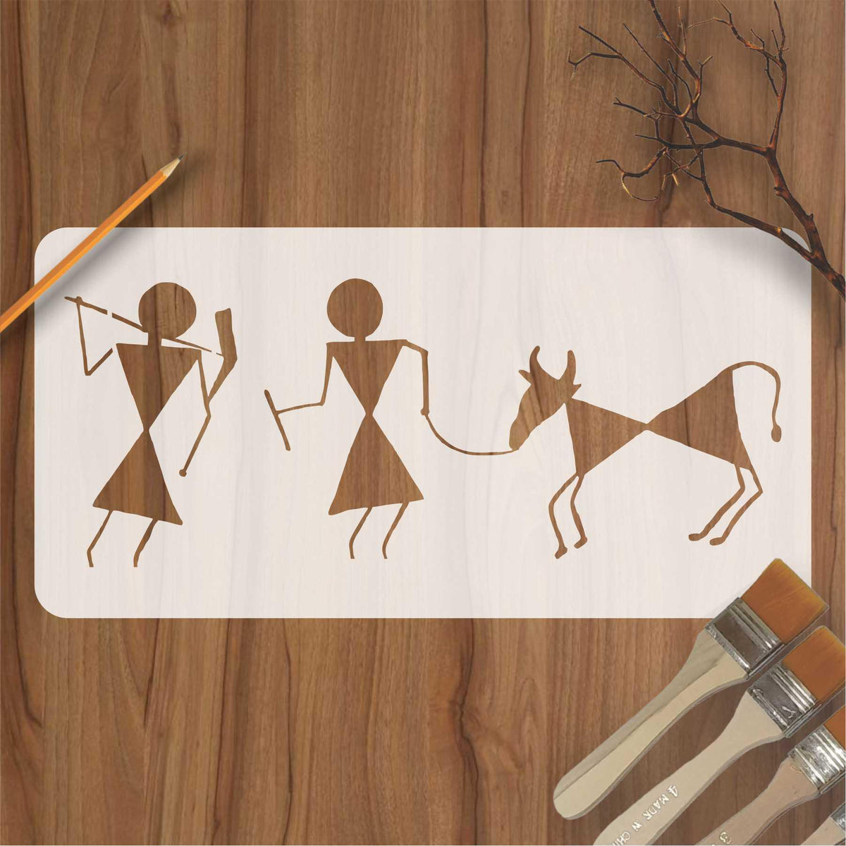 Warli Art Stencil | Tribal Folk Art Stencil for Wall Painting, Canvas, and Scrapbooking ID#4502