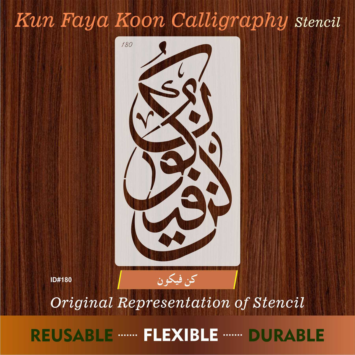 Islamic Calligraphy Stencil of Kun Faya Koon For wall decoration, used for Canvas and scrapbooking, Our wall stencils are unbreakable and reusable, which can be used with different kinds of paints and techniques, find more calligraphy stencils, floral stencils, Mandela stencils, in our store.