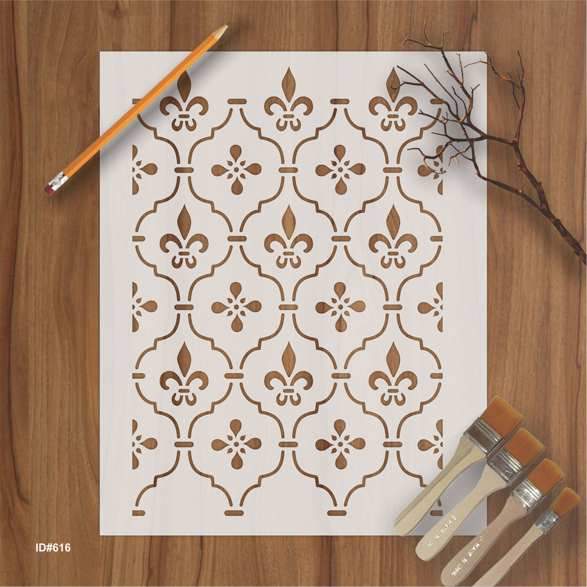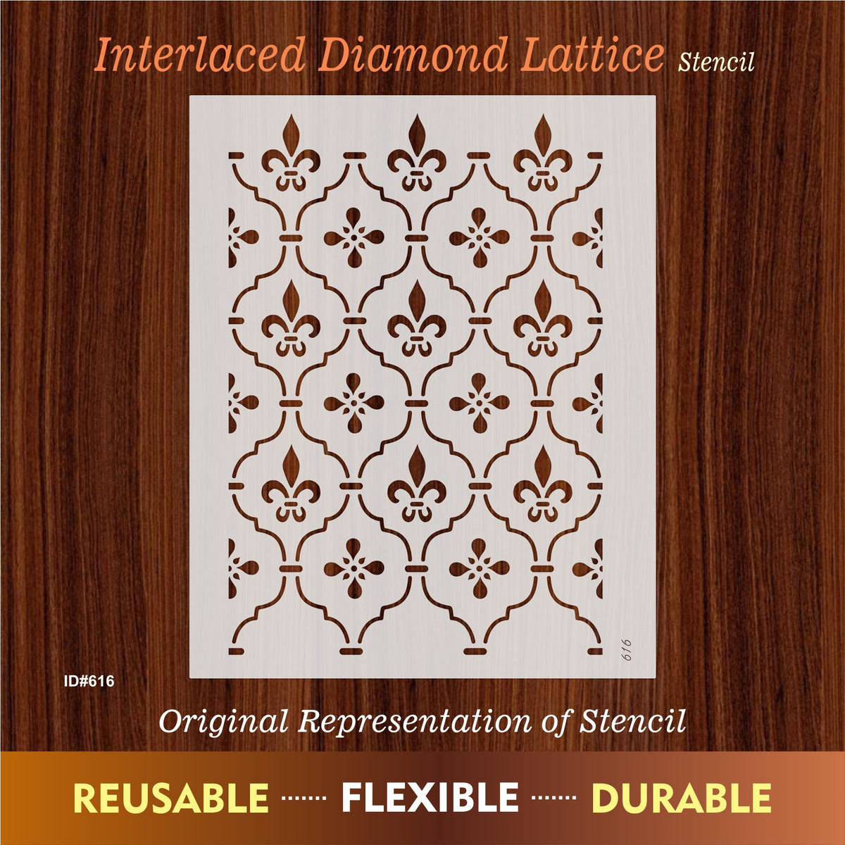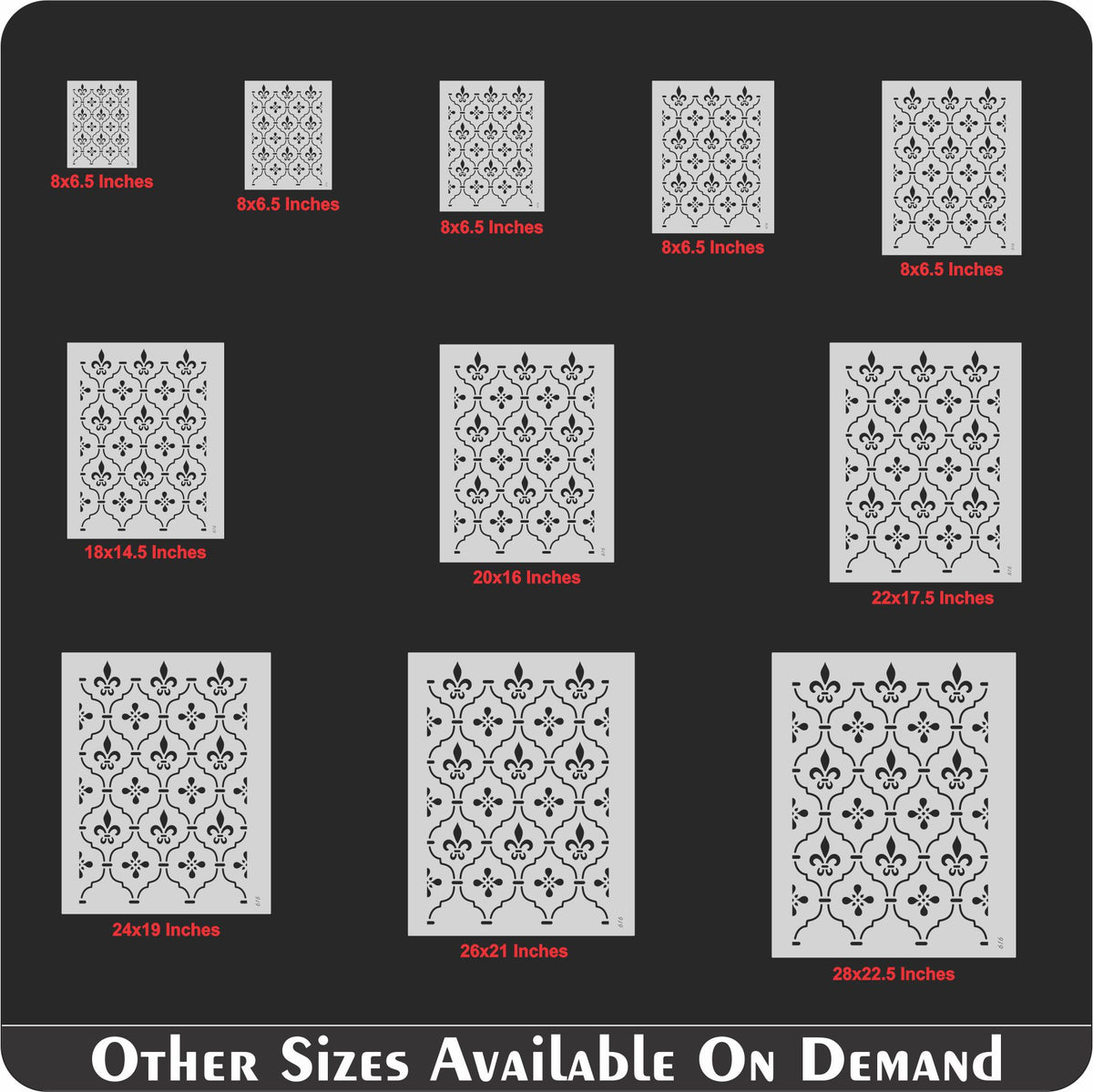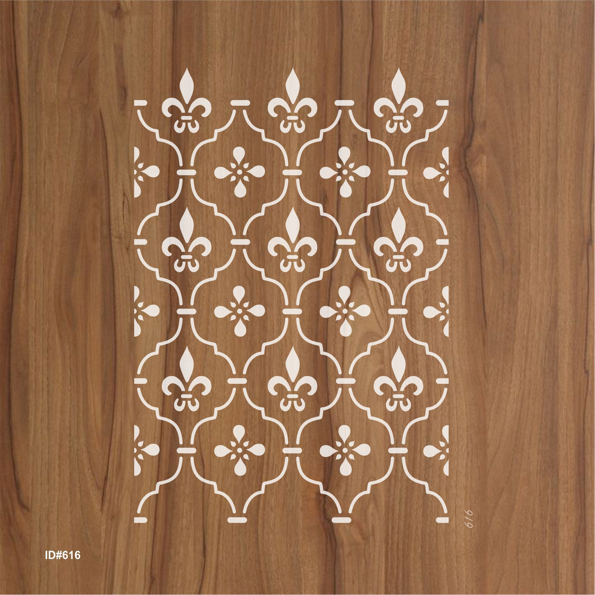 Add timeless elegance to your projects with this reusable Fleur-de-Lis trellis stencil, perfect for walls, wood, fabric, furniture, and floors.