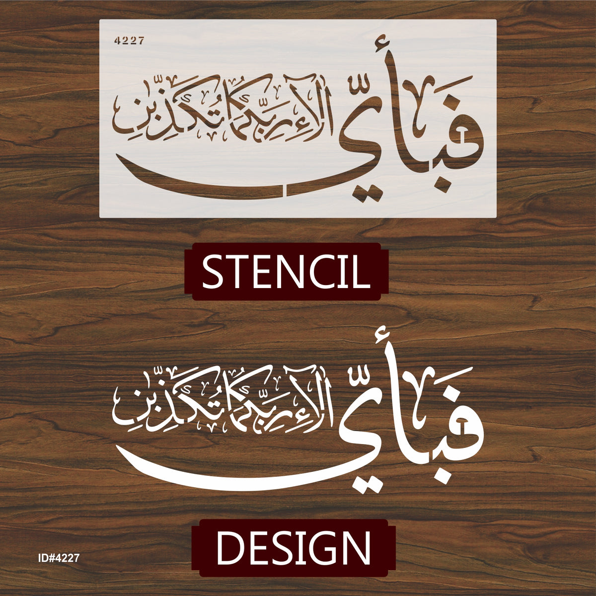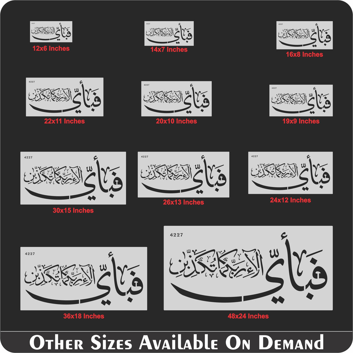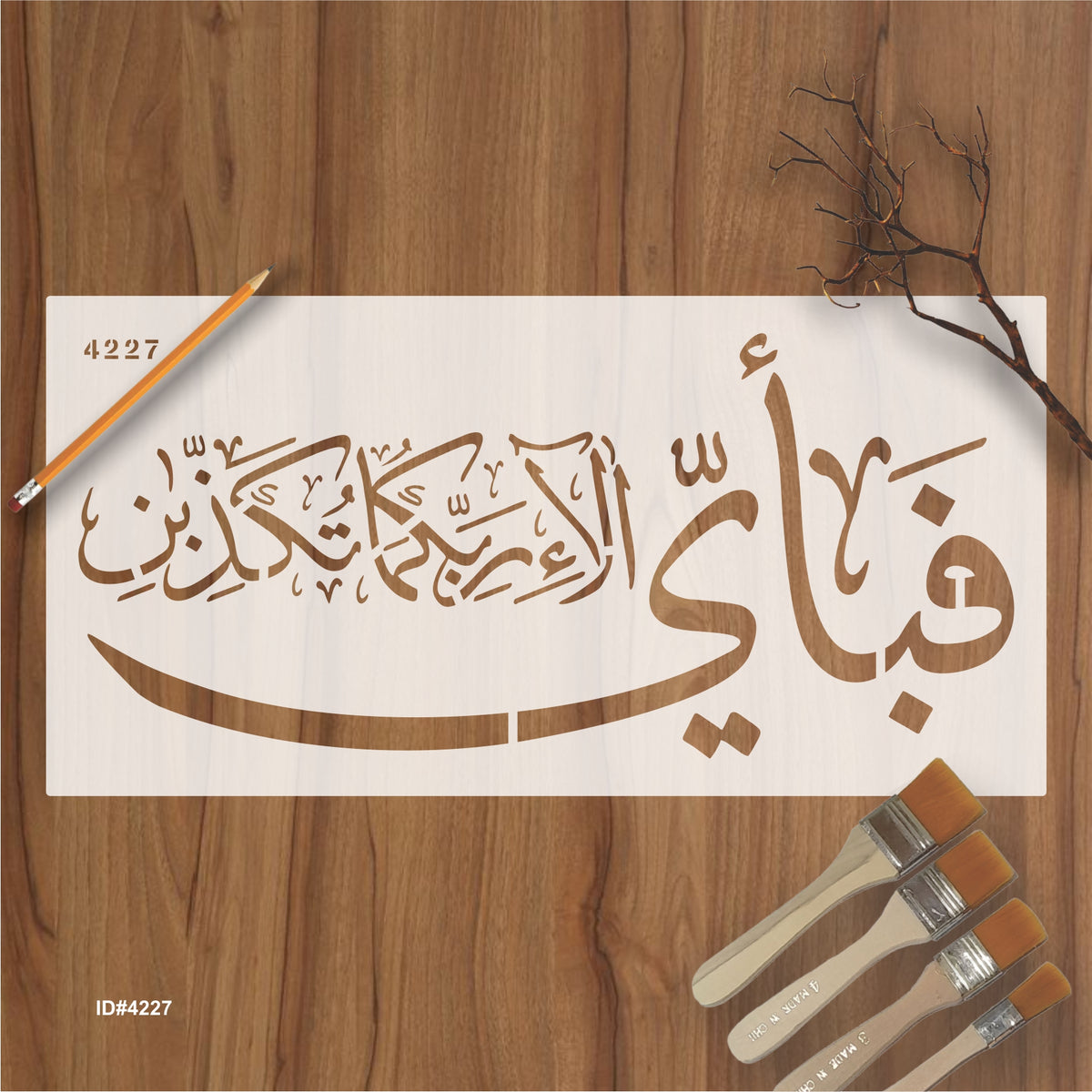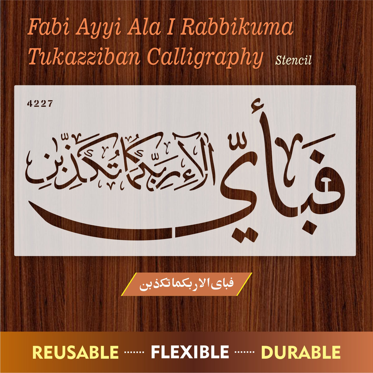 Islamic Calligraphy Stencil of Fabi Ayyi Ala I Rabbikuma Tukazziban For wall decoration, used for Canvas, and scrapbooking, Our wall stencils are unbreakable and reusable and can be used with different kinds of paints and techniques, find more calligraphy stencils, floral stencils, and Mandela stencils, in our store.
