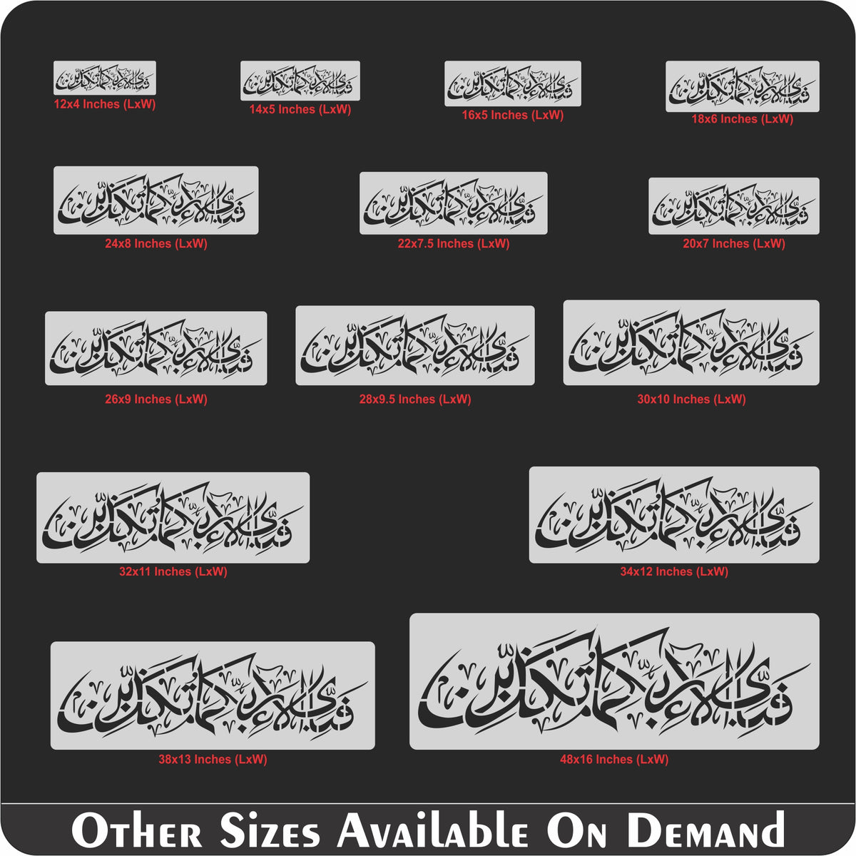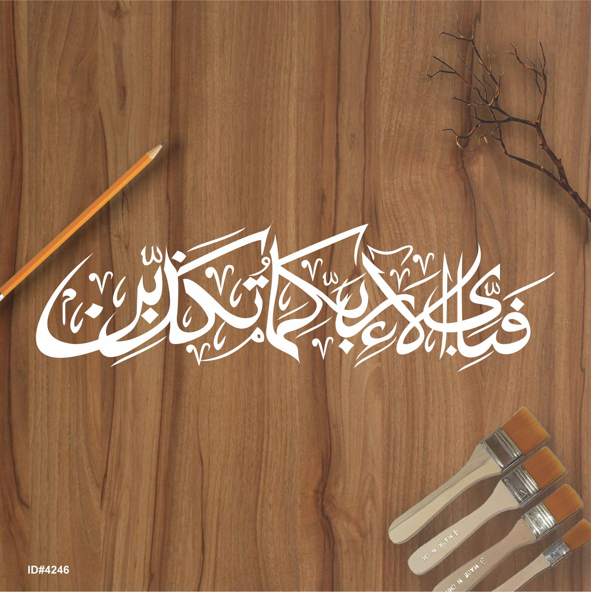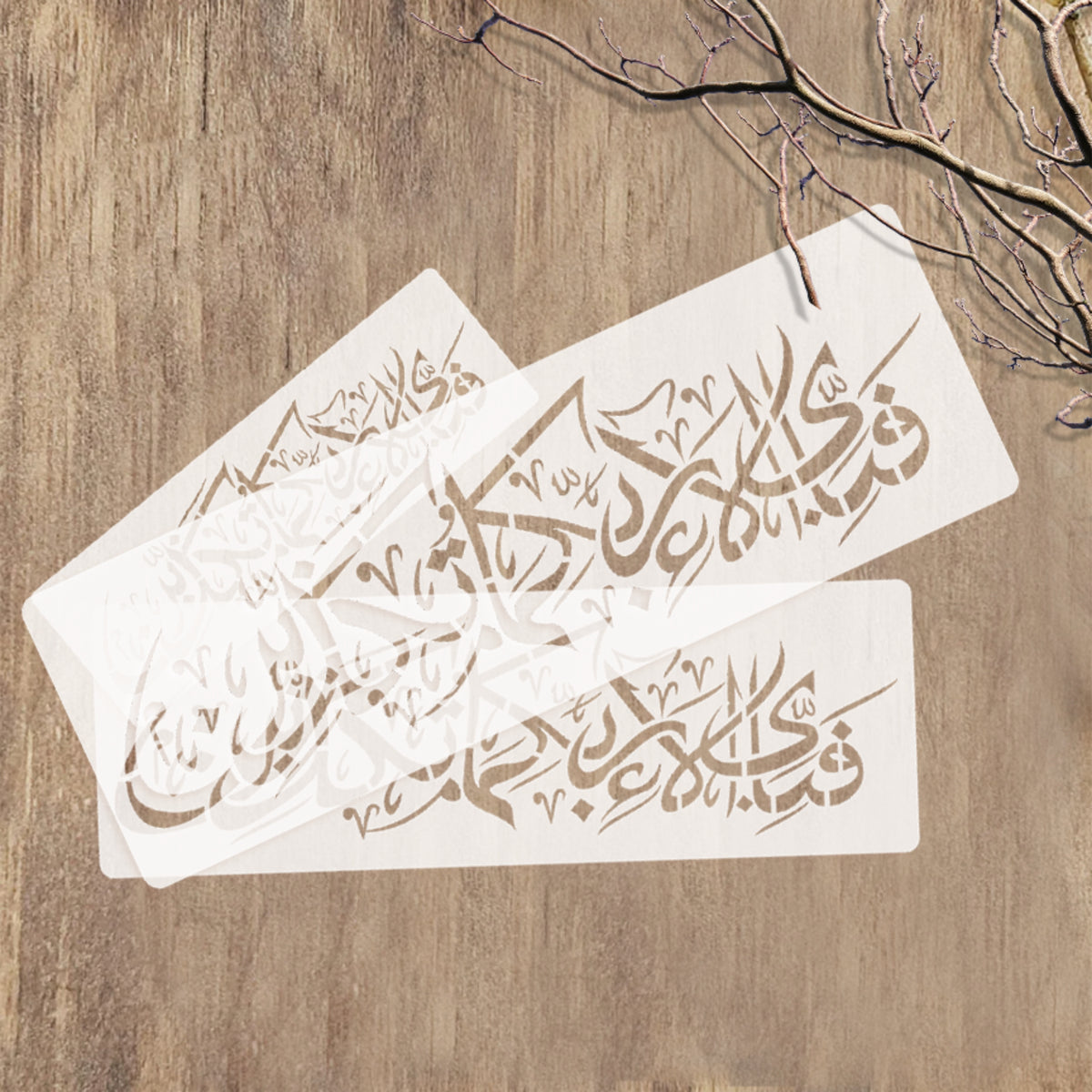 Islamic Calligraphy Stencil of Fabi Ayyi Ala I Rabbikuma Tukazziban For wall decoration, used for Canvas, and scrapbooking, Our wall stencils are unbreakable and reusable and can be used with different kinds of paints and techniques, find more calligraphy stencils, floral stencils, and Mandela stencils, in our store.