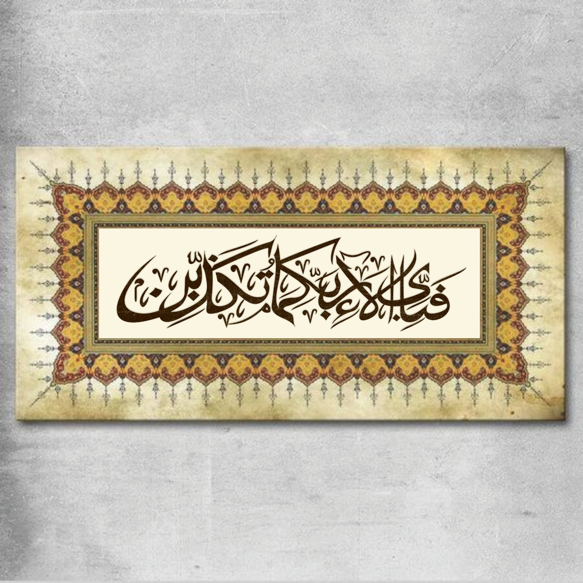 Fabi Ayyi Ala I Rabbikuma Tukazziban (55. Ar-Rahmaan) Calligraphy Islamic Reusable Stencil for Canvas and wall painting.ID#4246