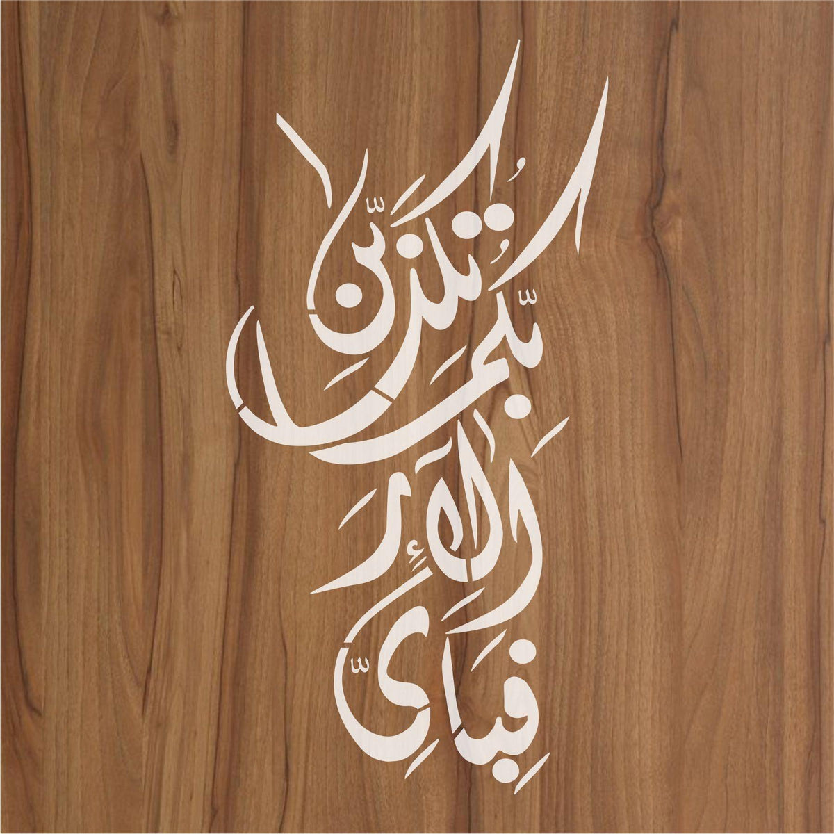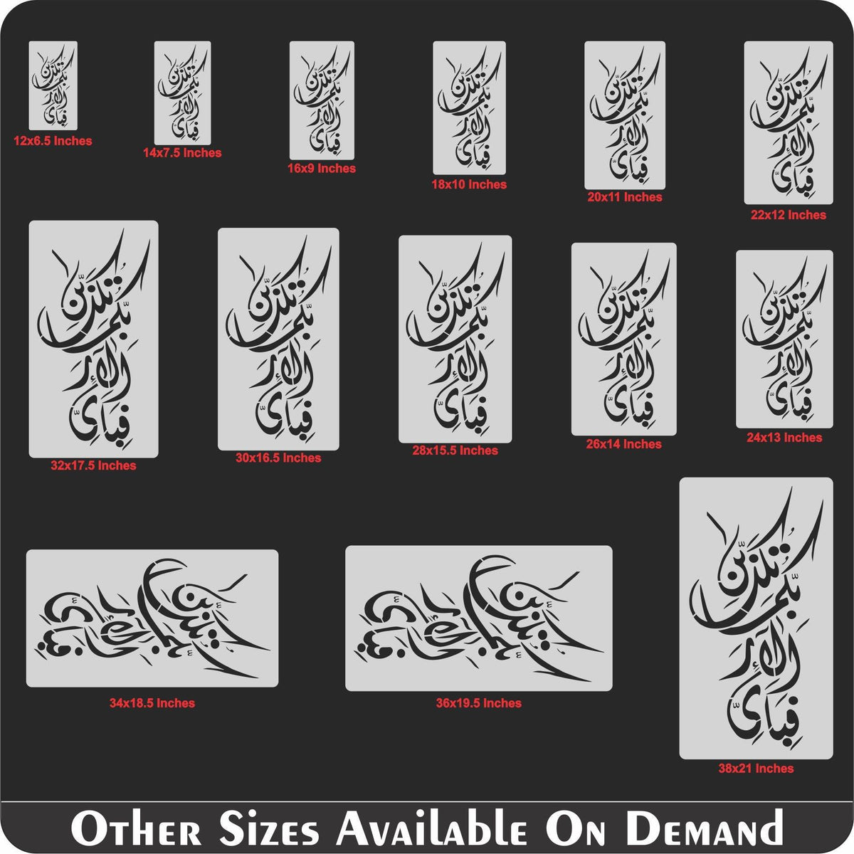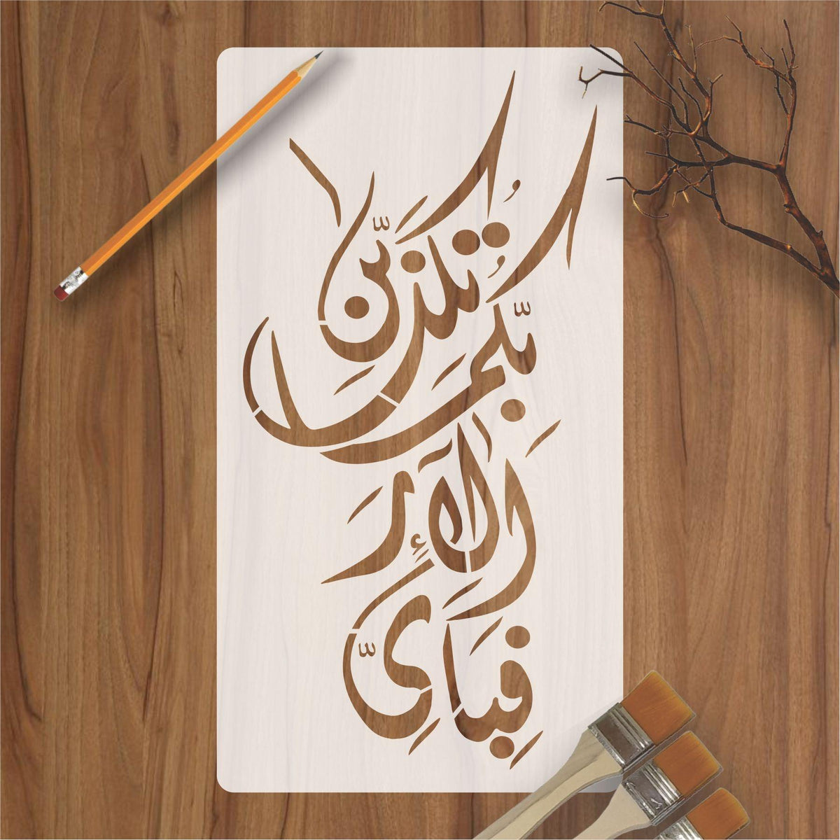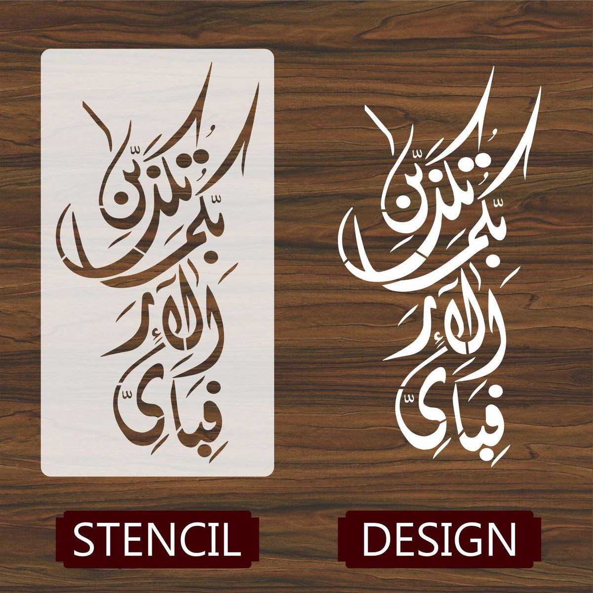 Islamic Calligraphy Stencil of Ya Fabi Ayyi Ala I Rabbikuma Tukazziban For wall decoration, used for Canvas and scrapbooking, Our wall stencils are unbreakable and reusable, which can be used with different kinds of paints and techniques, find more calligraphy stencils, floral stencils, Mandela stencils, in our store.