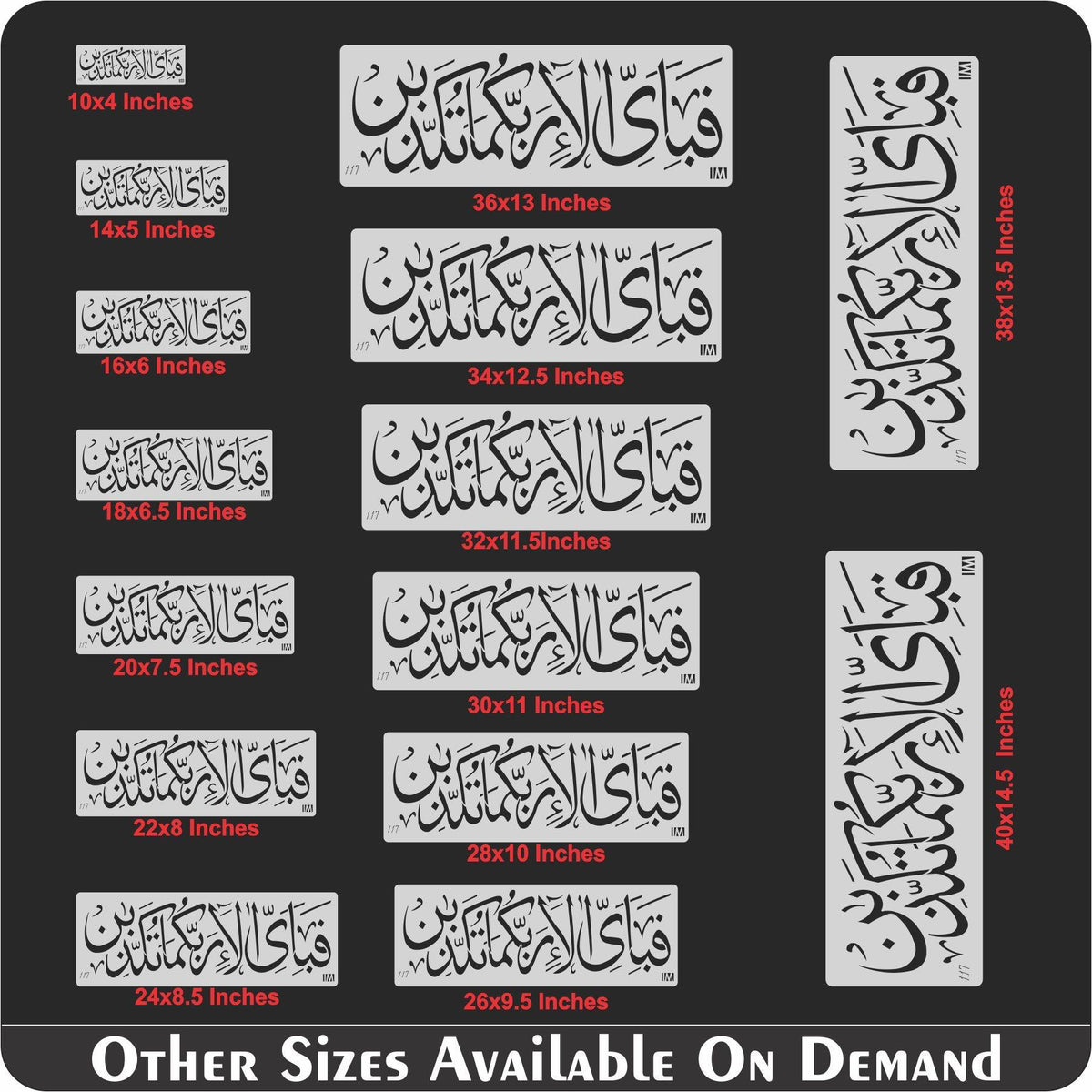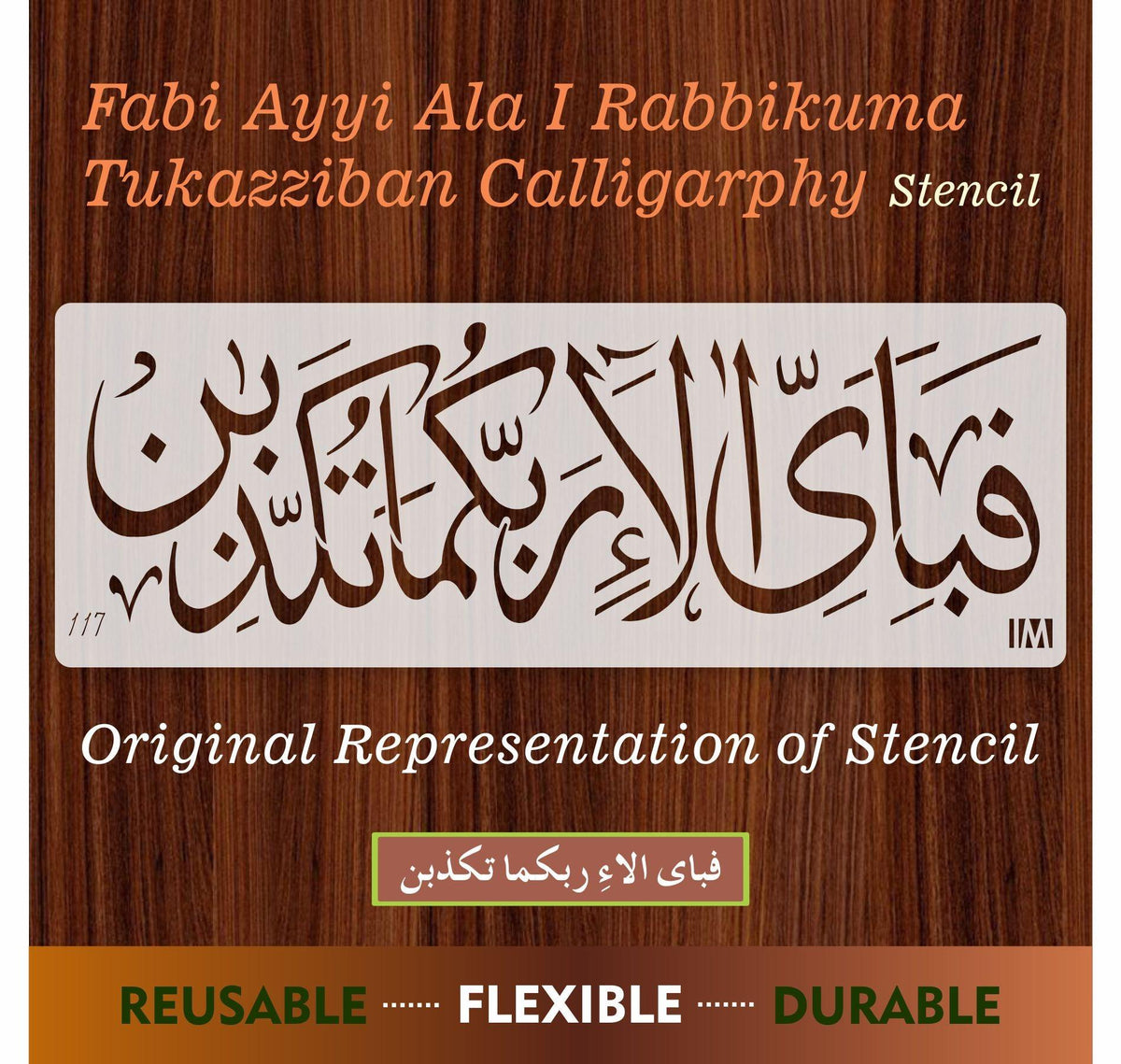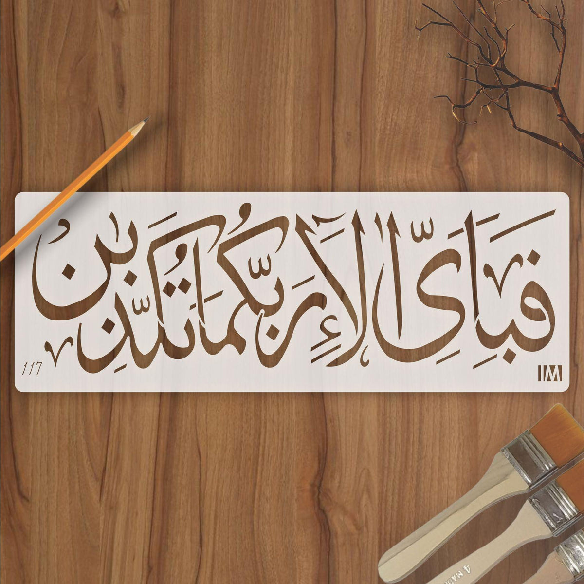 fabi ayyi ala i rabbikuma tukazziban Calligraphy Islamic Reusable Stencil For wall decoration, used for Canvas and scrapbooking, Our wall stencils are unbreakable and reusable, which can be used with different kind of paints and techniques, find more imart stencils, floral stencils, Mandela stencils, in our store.