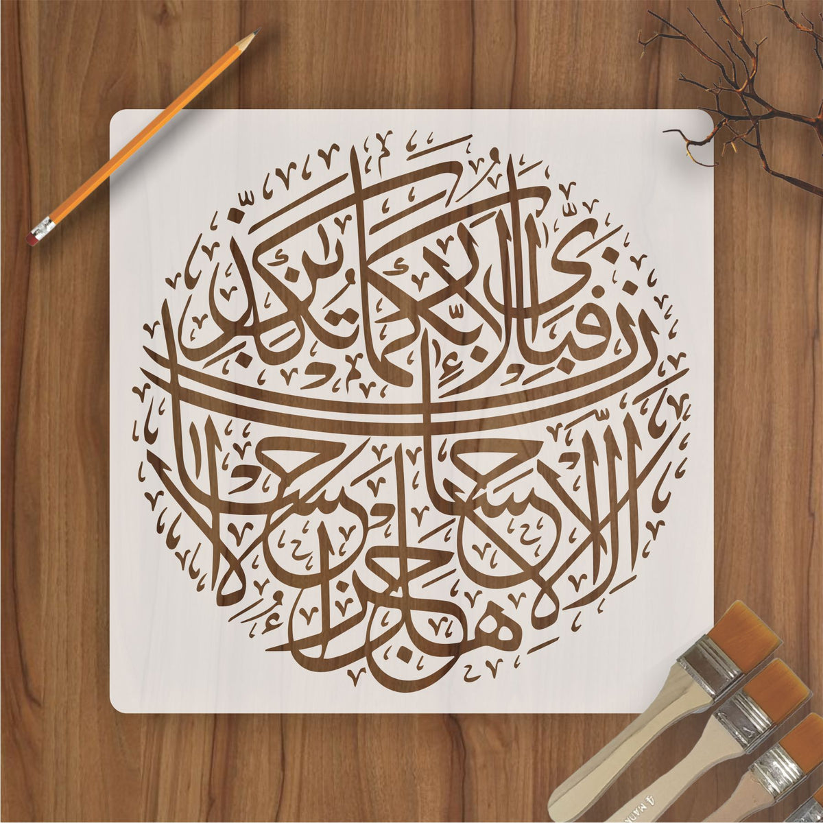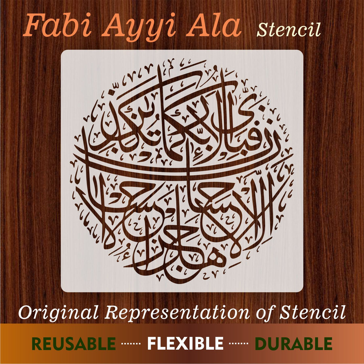 Islamic Calligraphy Stencil of Fabi Ayyi Ala I Rabbikuma Tukazziban For wall decoration, used for Canvas and scrapbooking, Our wall stencils are unbreakable and reusable, which can be used with different kinds of paints and techniques, find more calligraphy stencils, floral stencils, Mandela stencils, in our store.
