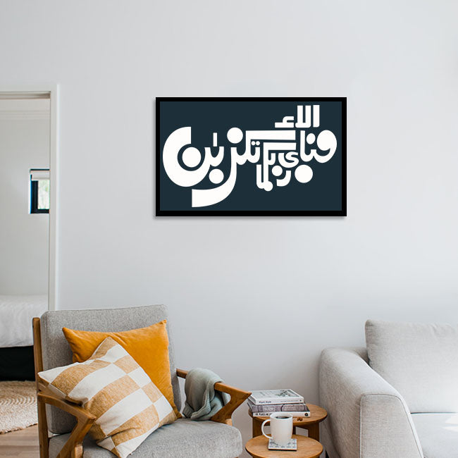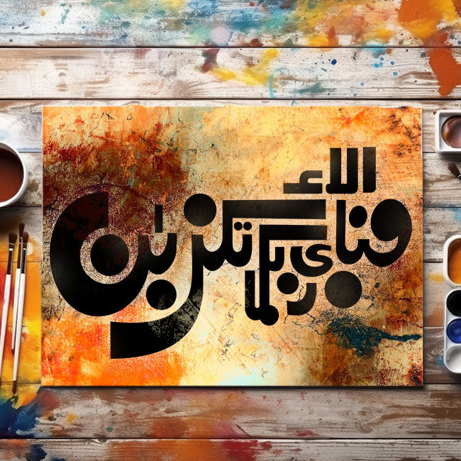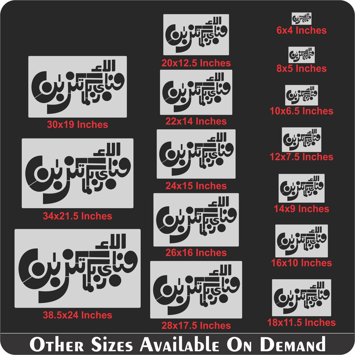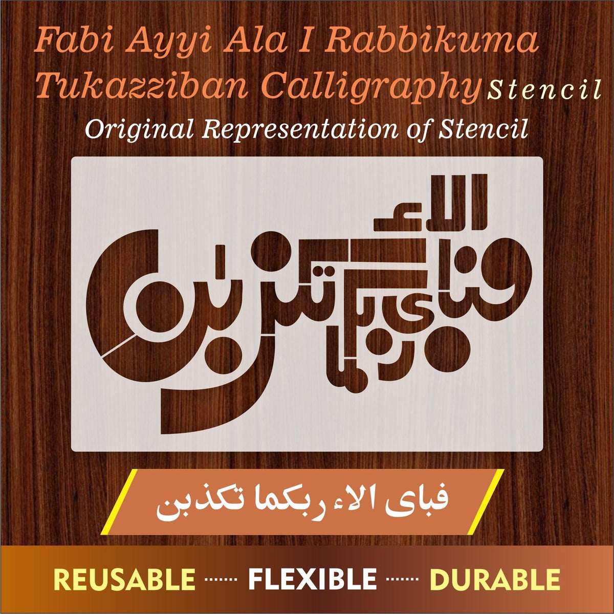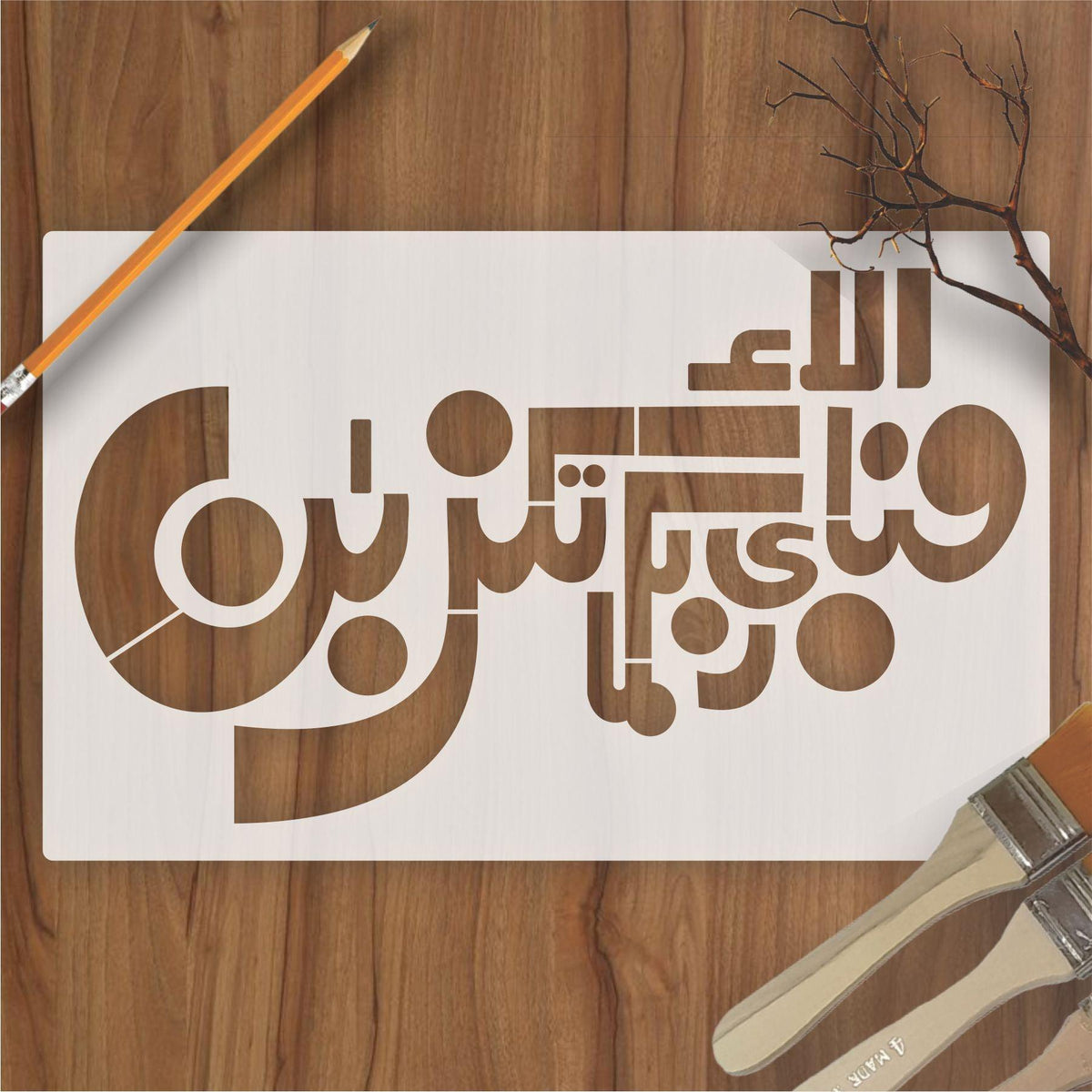 Islamic Calligraphy Stencil of FABI AYYI ALA I RABBIKUMA TUKAZZIBAN For wall decoration, used for Canvas and scrapbooking, Our wall stencils are unbreakable and reusable, which can be used with different kinds of paints and techniques, find more calligraphy stencils, floral stencils, Mandela stencils, in our store.
