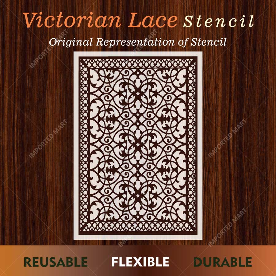 Enhance your décor with this elegant Victorian Lace Stencil, perfect for walls, wood furniture, tiles, fabric, and floor painting projects.