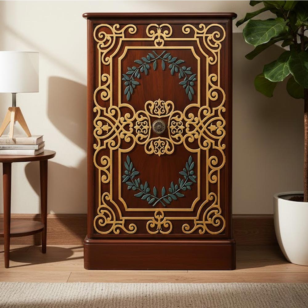 Its intricate scrollwork and symmetrical frame design create a royal, luxury, and timeless aesthetic.