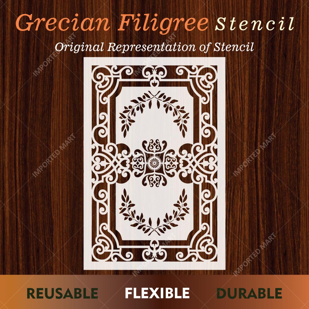Grecian Filigree Frame Stencil for Wall, Furniture & Floor Décor – Classic Ornamental Border Design – ID# 732