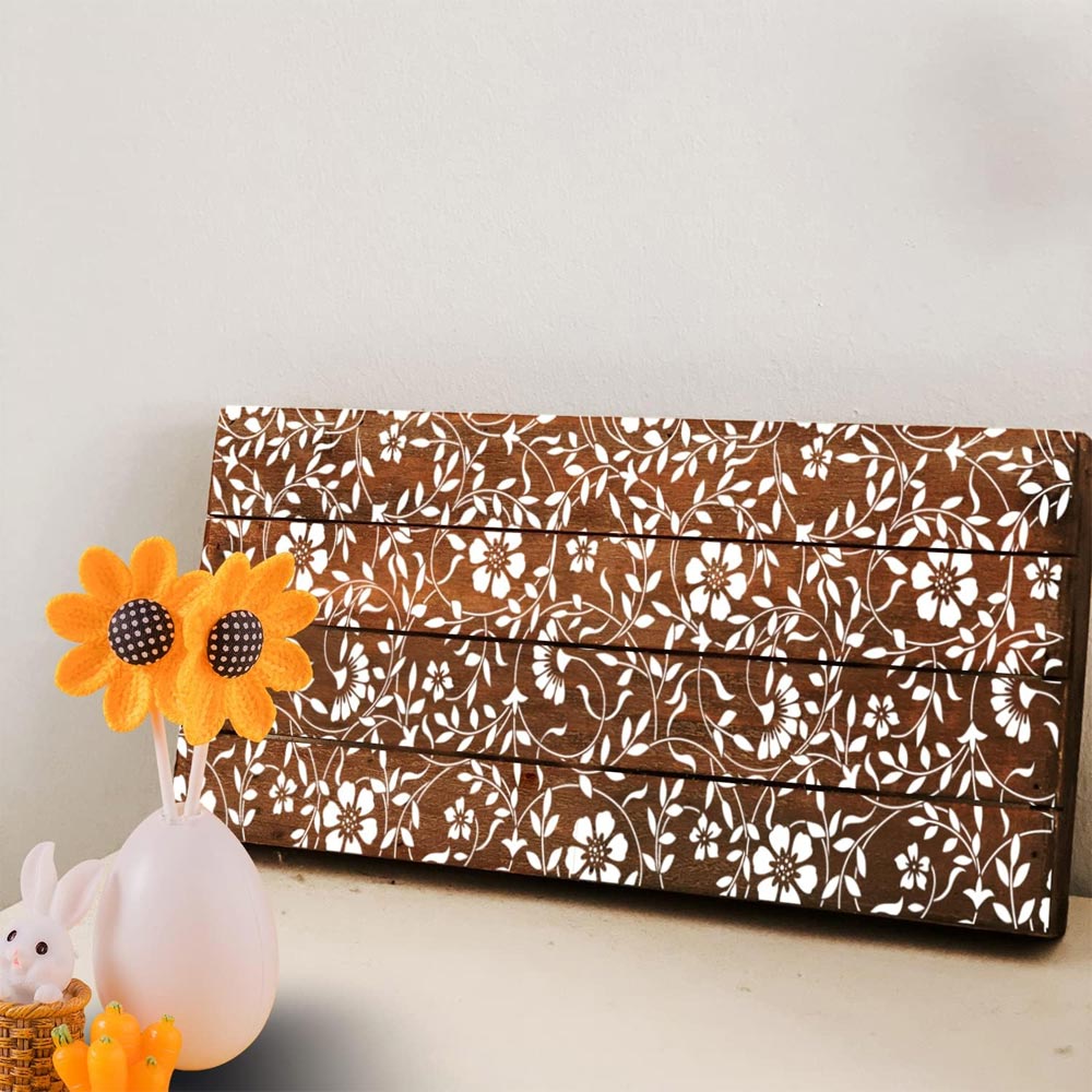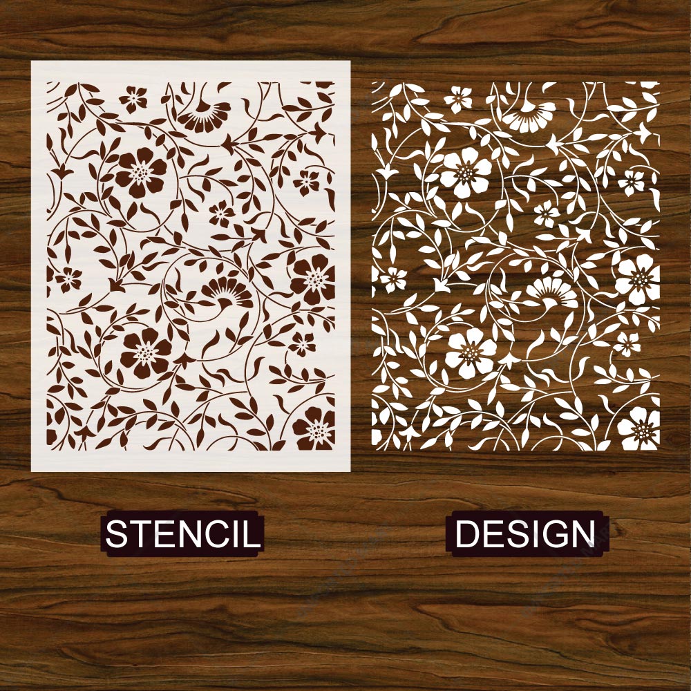 This vintage botanical stencil design is ideal for walls, wooden furniture, floors, and decorative panels.